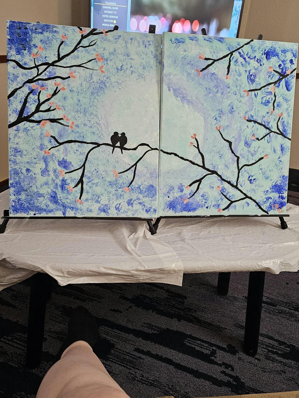Can you feel the love between our cute little Lovebirds in this painting? Lovebirds at Dusk is a great painting for beginners as it incorporates simple strokes and a technique to create texture in your own painting! A great choice for date night - this painting can be completed on a single horizontal canvas or diptych style on two vertical canvases pushed together.