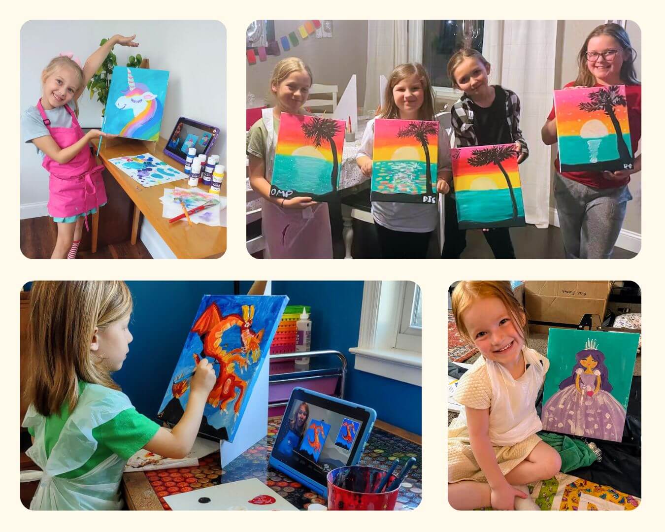 Our acrylic painting kits will help your kids express their creativity. You'll receive the art supplies and our experienced art teachers will teach the painting step by step. Recommended for ages 6-12.