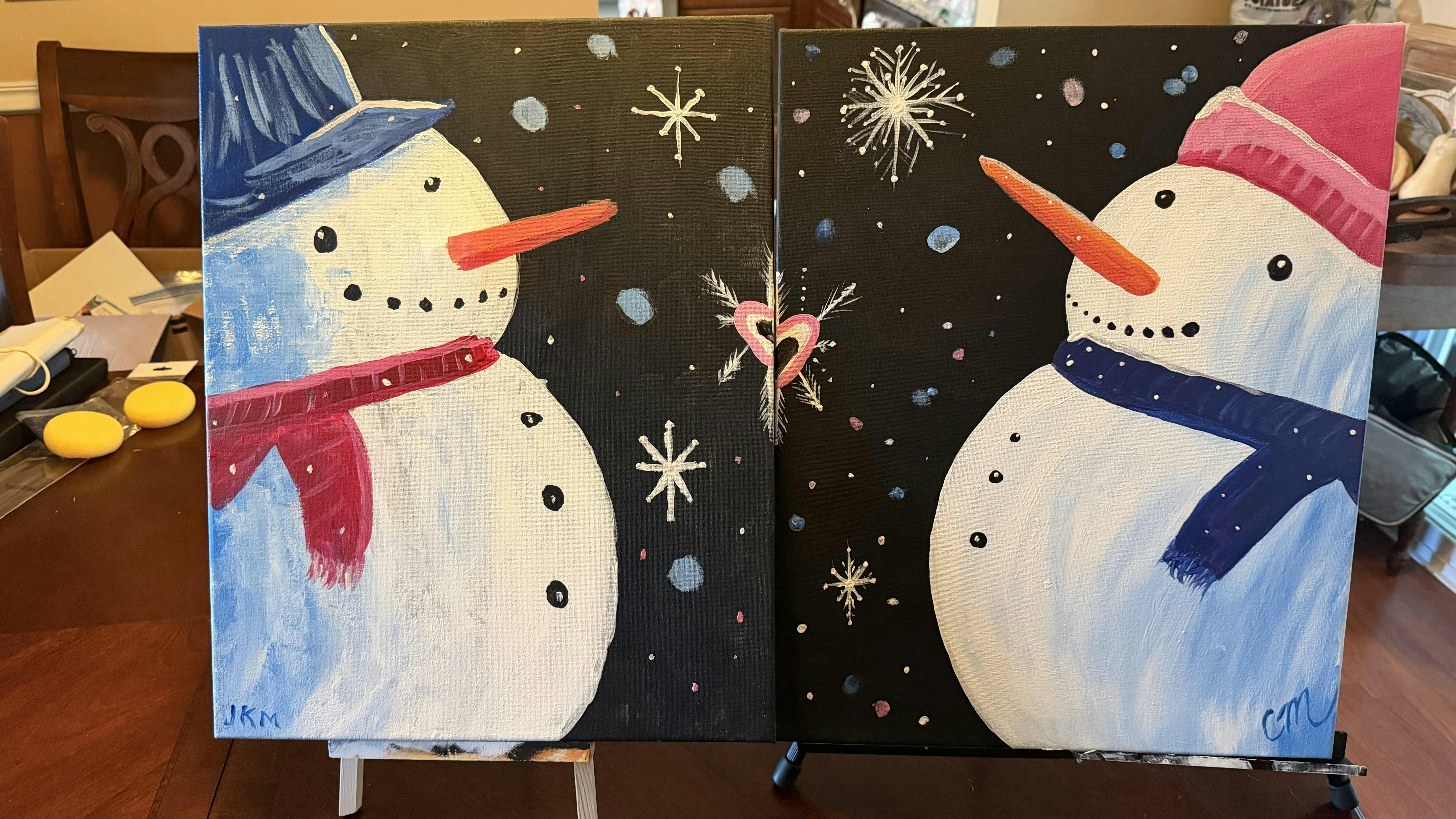 My husband and I have recently become Empty Nesters and were looking for fun date night ideas. This one did NOT disappoint. We had so much fun tapping into our creative sides a little. The video was so well done and the step by step process was great for us…who are not painters 😜 and I love that our paintings still have our own unique touch on them. I’m already planning a mother-daughter painting night with our friends. If you’re on the fence…do it! You won’t be disappointed.