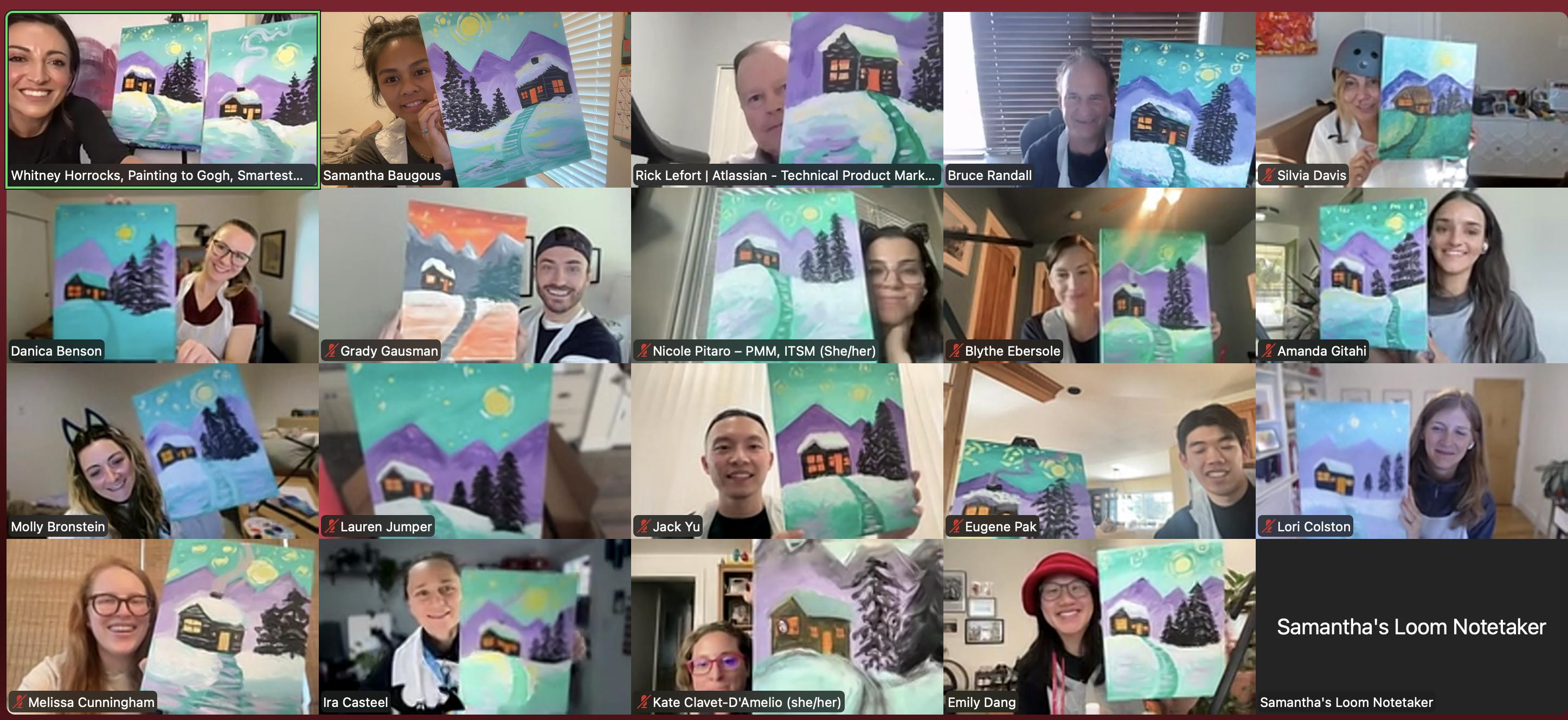 My team has been working so hard and needed an hour to disconnect from work and just be together (virtually). They enjoyed the hour of getting away and connecting to their inner artist!