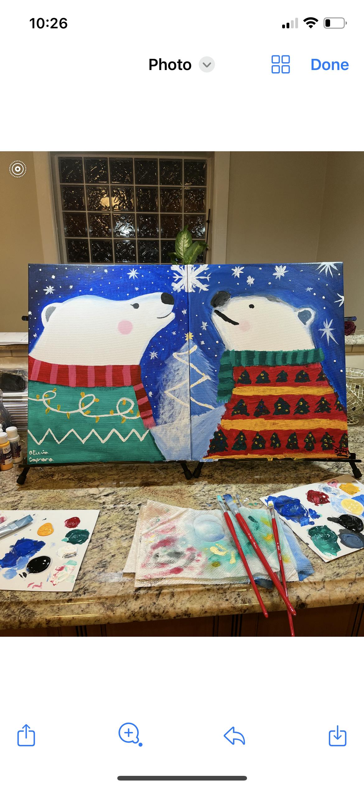 Enjoyed the clear instructions that left lots of room to play with colors and brush strokes. We’ve done several paintings and this one came together fairly stress free, especially with pauses to catch up 😊. Highly recommend!