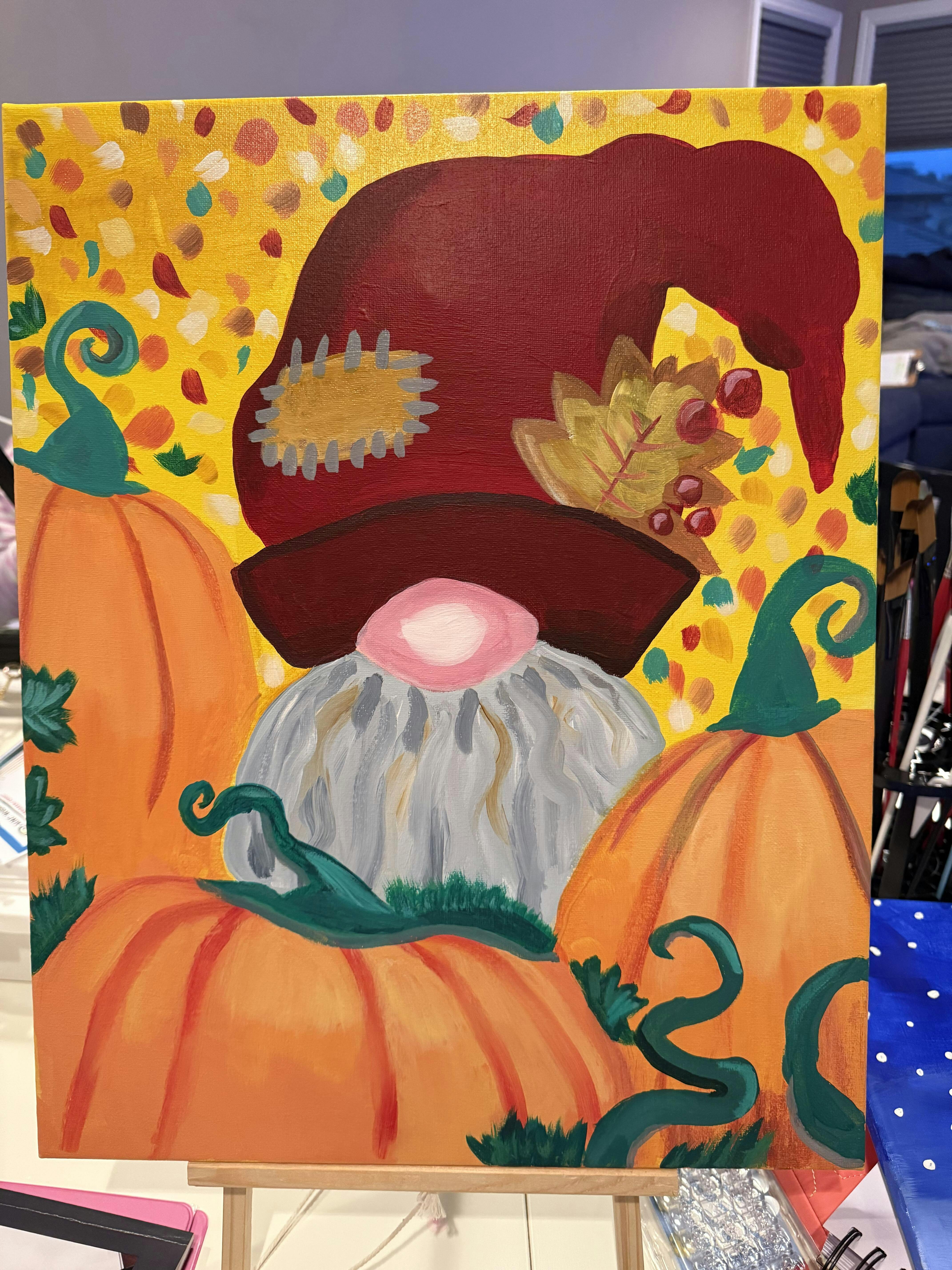 Great fall painting fun. I struggled with the leave on my gnome hat but I am proud of my painting . Highly recommend.