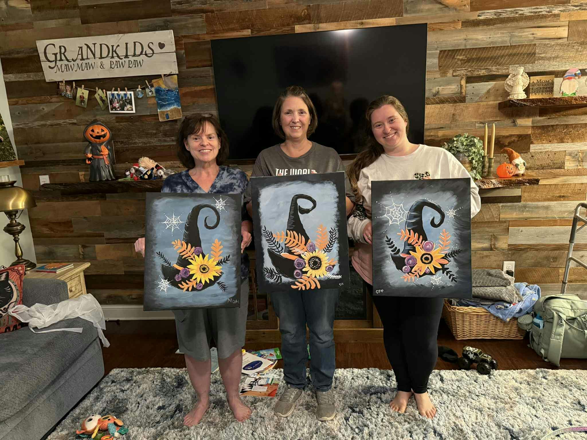 Loved painting the witch hat and flowers. The directing were easy to follow. It's nice to paint at home to go at our own speed and not feel rushed.