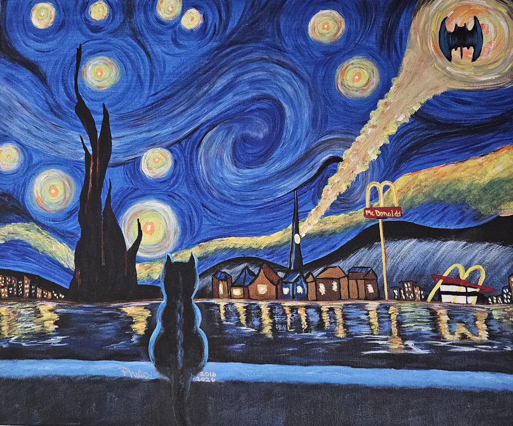 Always wanted to paint this. Added a few parodies I luved too! Used the video just to get started with background and placement then took my time adding the fun details I've accumulated from other paintings I've seen. Luv PTG video only option.