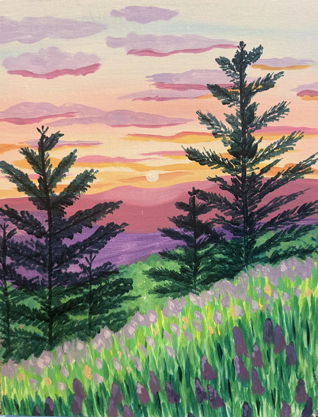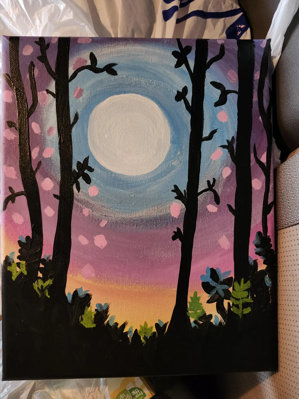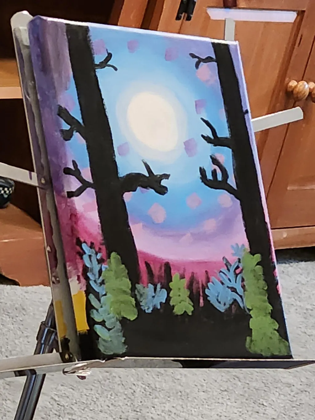 Beautiful painting. Excellent instructor. We had to break it up into 2 painting sessions because we ran out of time but it was easy to find where we left off. It’s now hanging over our bed :-) can’t wait to have our next painting date night!