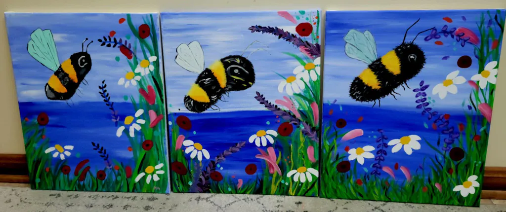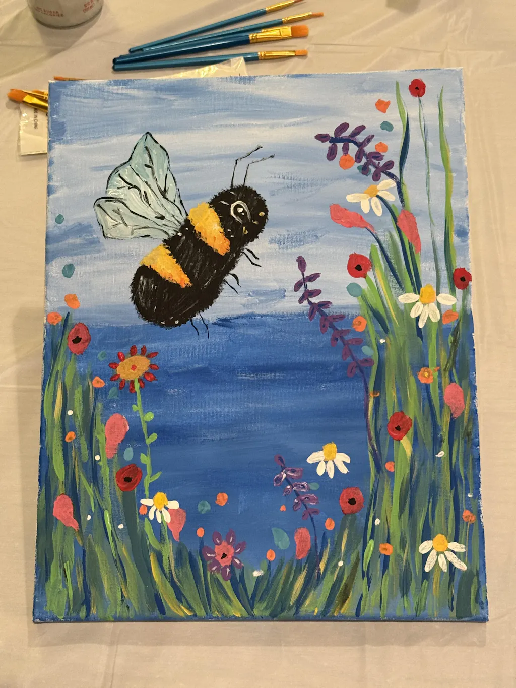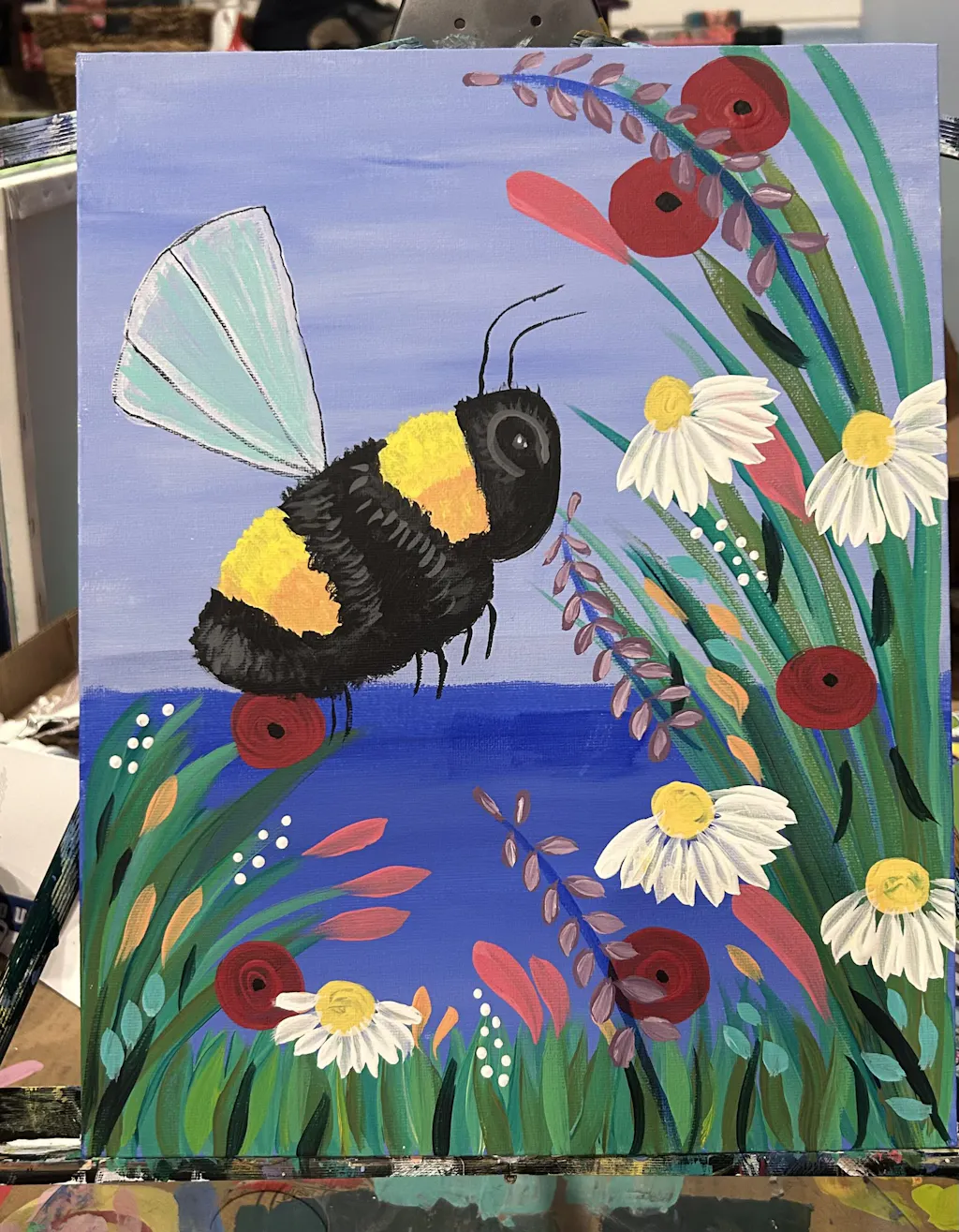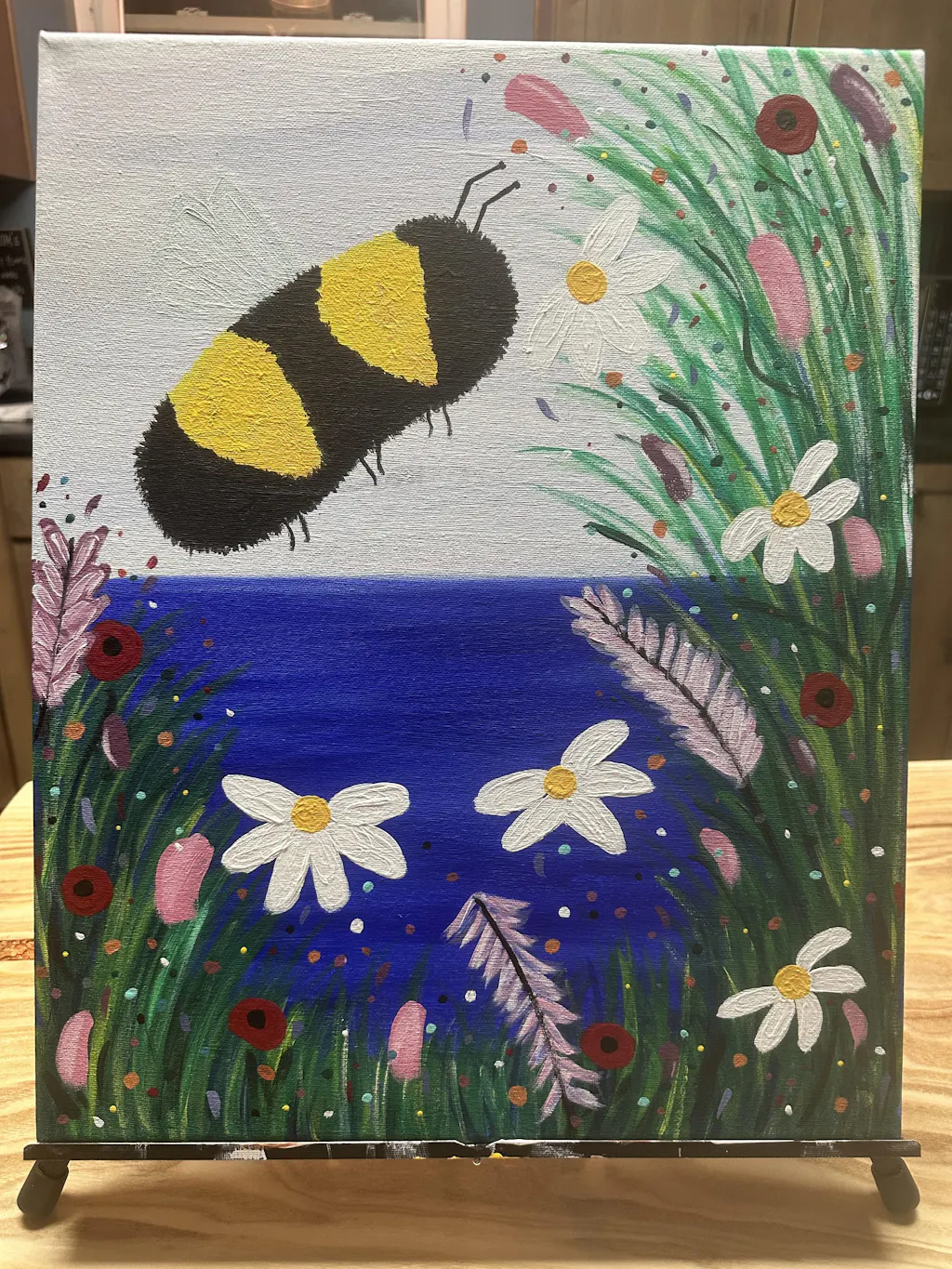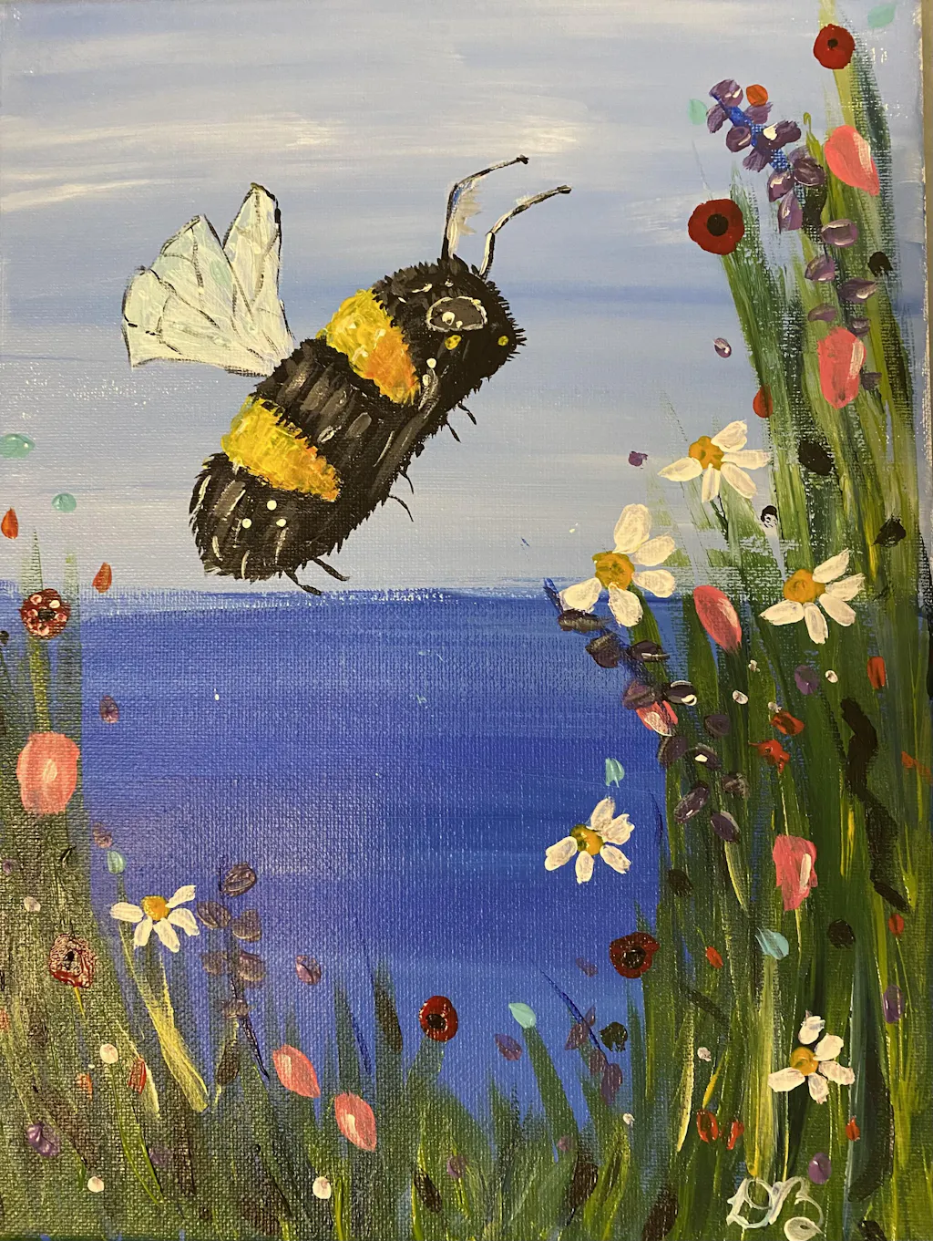 Follow this fuzzy friend and stop to smell the wildflowers growing along a sunny coast! With an explosion of colorful blooms, this painting is brimming over with wildlife. Abstracted flowers and detailed instructions make this scene BEE-ginner-friendly.