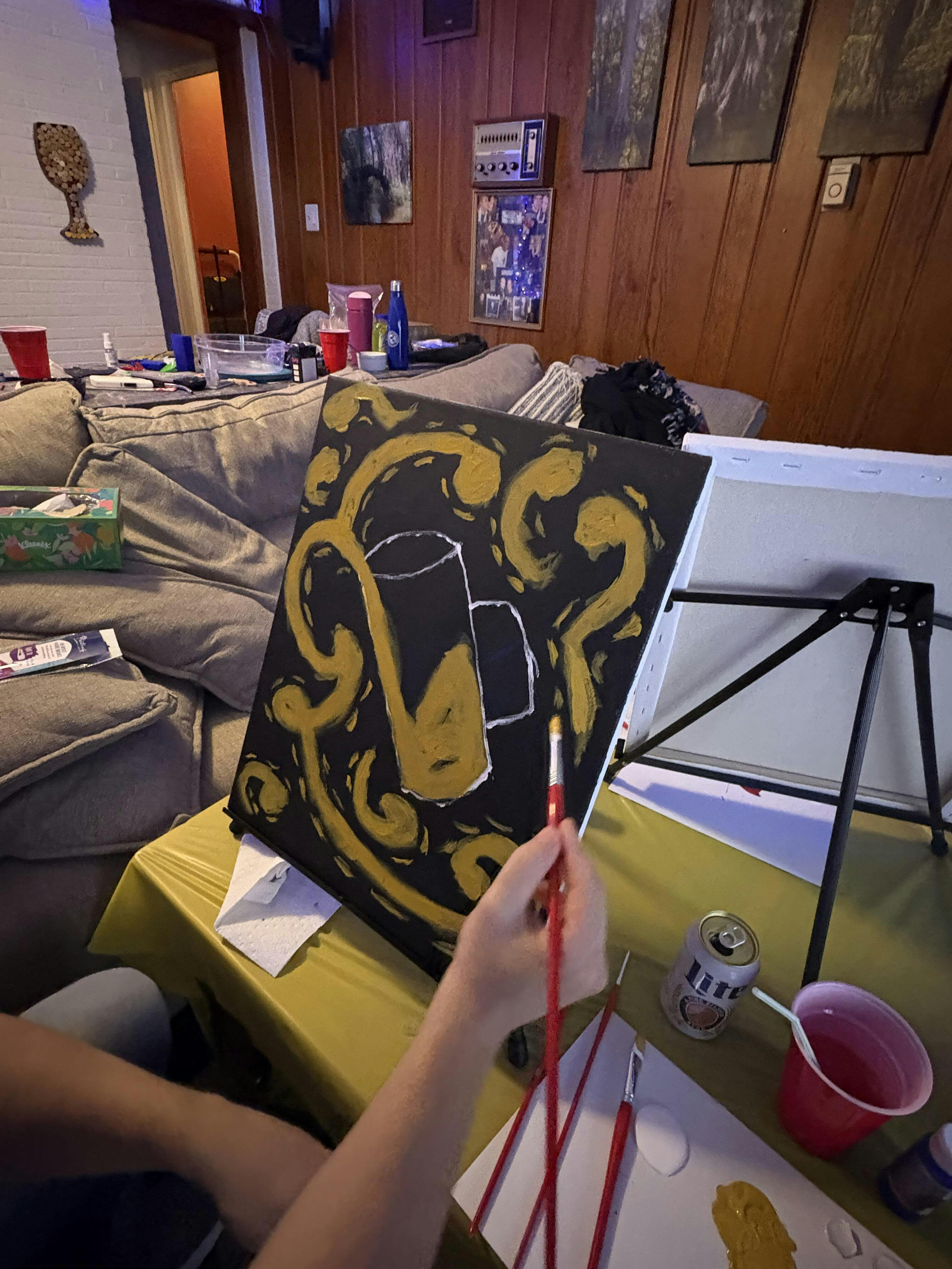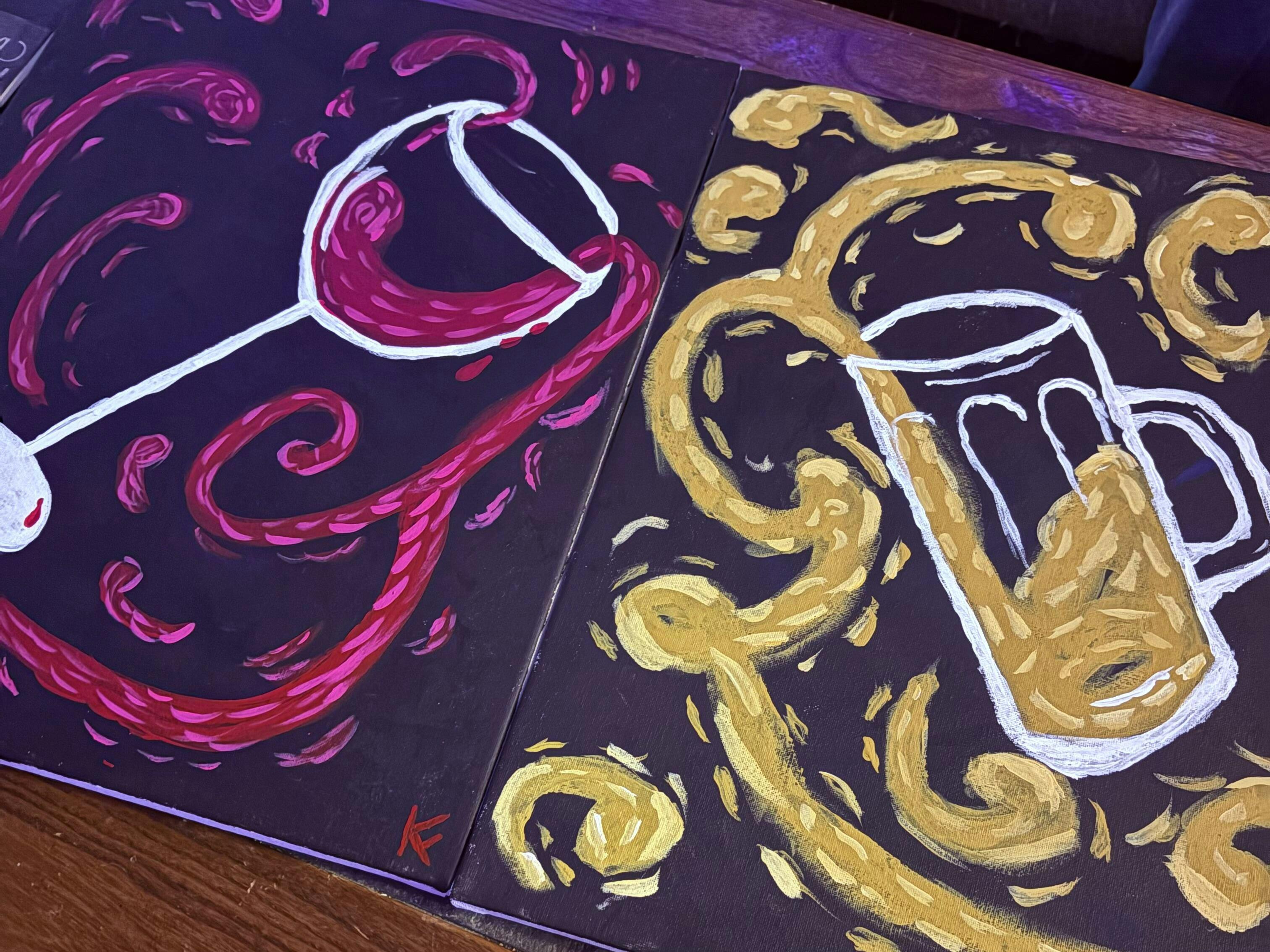 Raise your glass (and a paintbrush!) and toast to your creativity with bright splashes of color against a dark backdrop. Learn how to create the structure of beer and wine glasses using simple shapes, and then let the drinks flow with brush strokes galore a la van Gogh for a finished masterpiece worth celebrating. Paint both glasses together on one canvas, or choose your favorite drink and clink your canvases together with a partner, family, or friends. Salut!