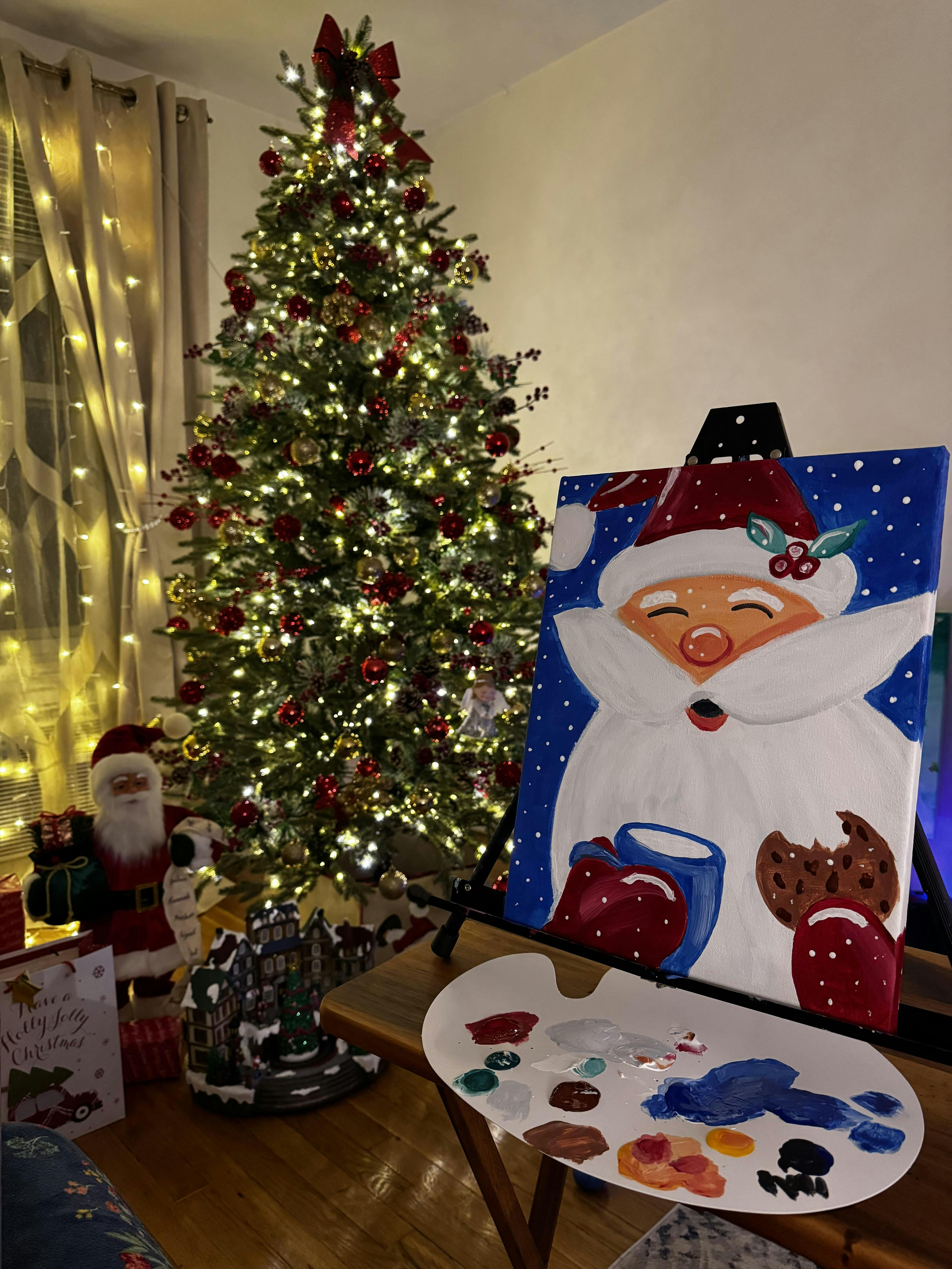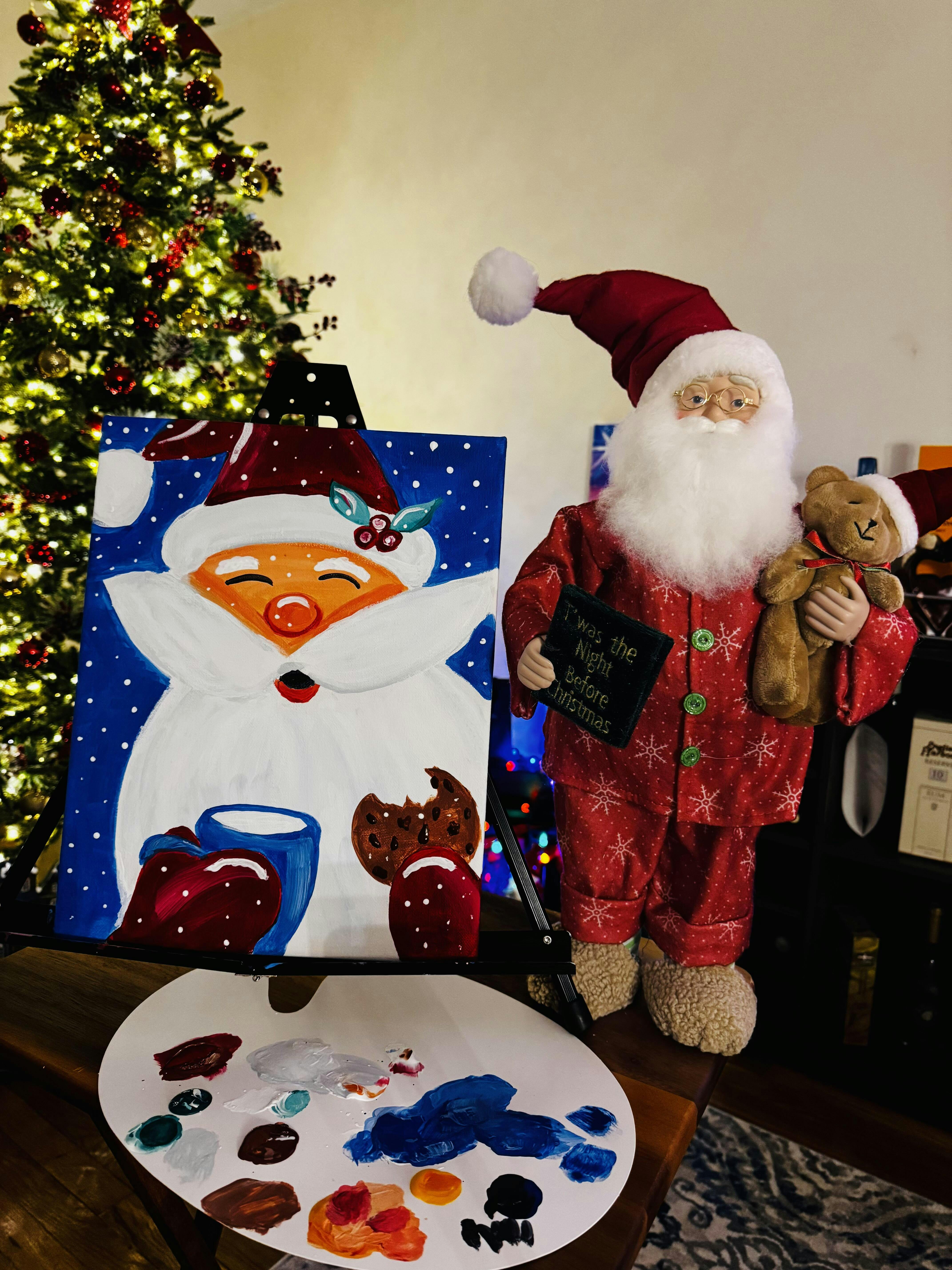 Capture the joy of Christmas Eve with Santa, cookies, and cocoa! This festive painting is the perfect way to celebrate holiday cheer.