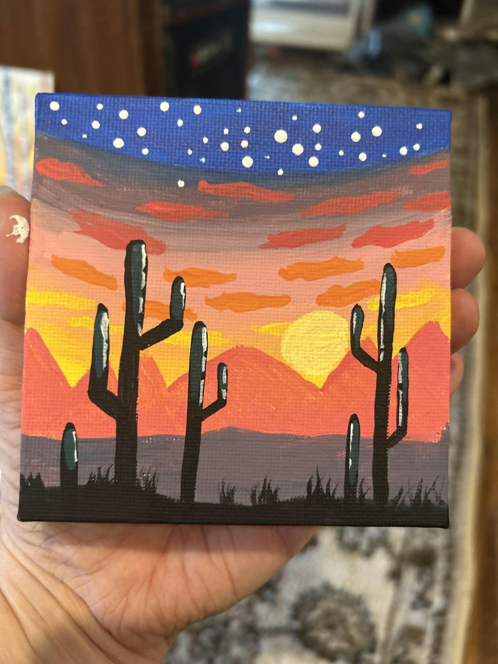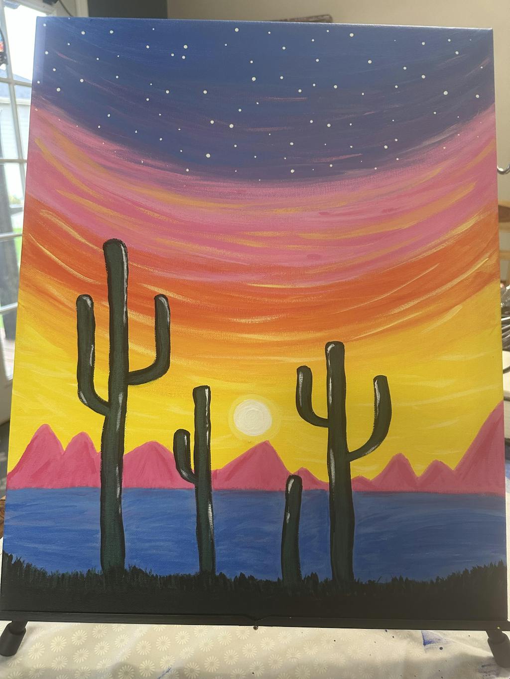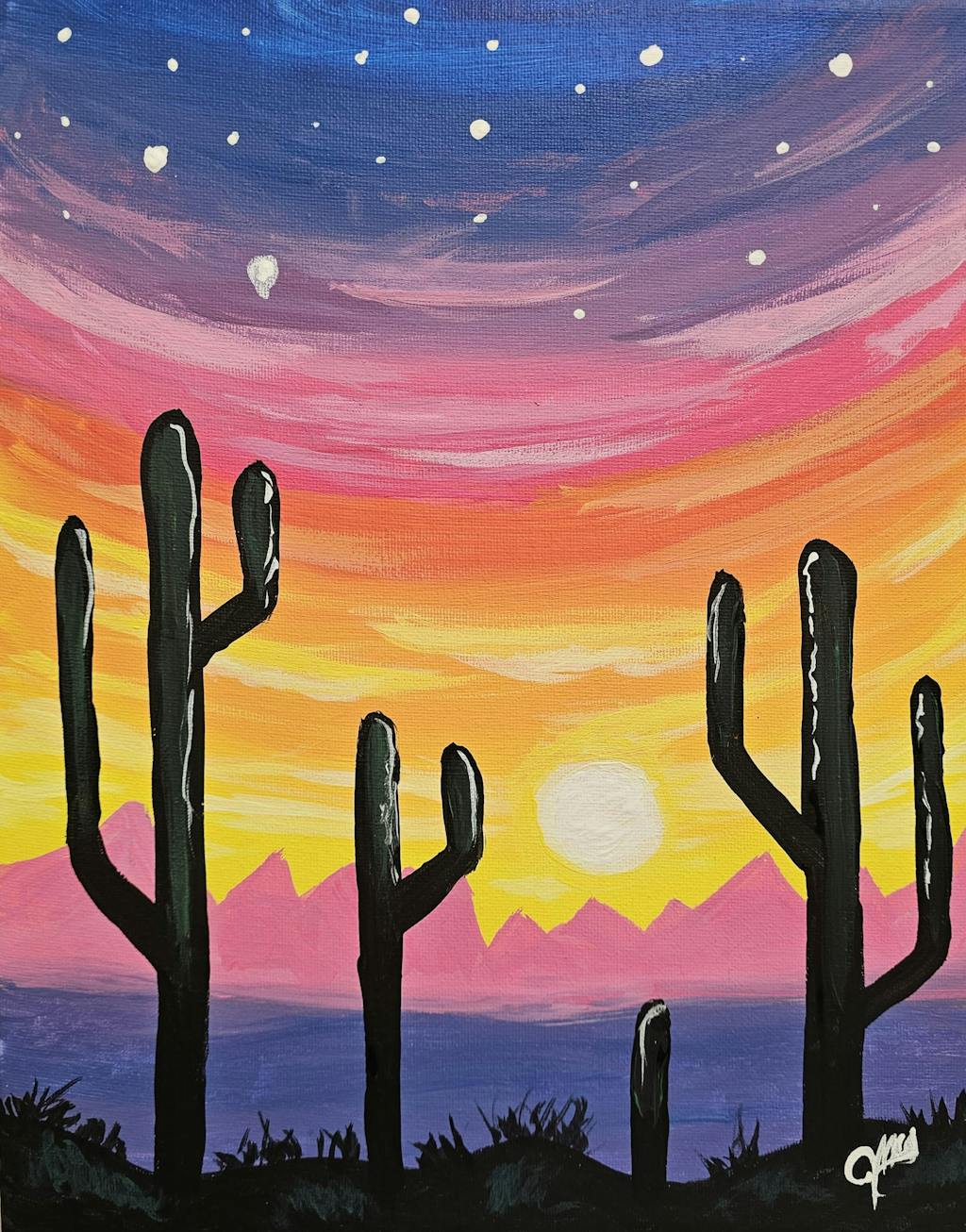 Catch the last flourish of sunset blazing behind a stand of silhouetted cacti as this scenic vista transforms into the perfect stargazing spot. Learn an easy method for blending colors from light to dark for a stunning scene of the desert at dusk.