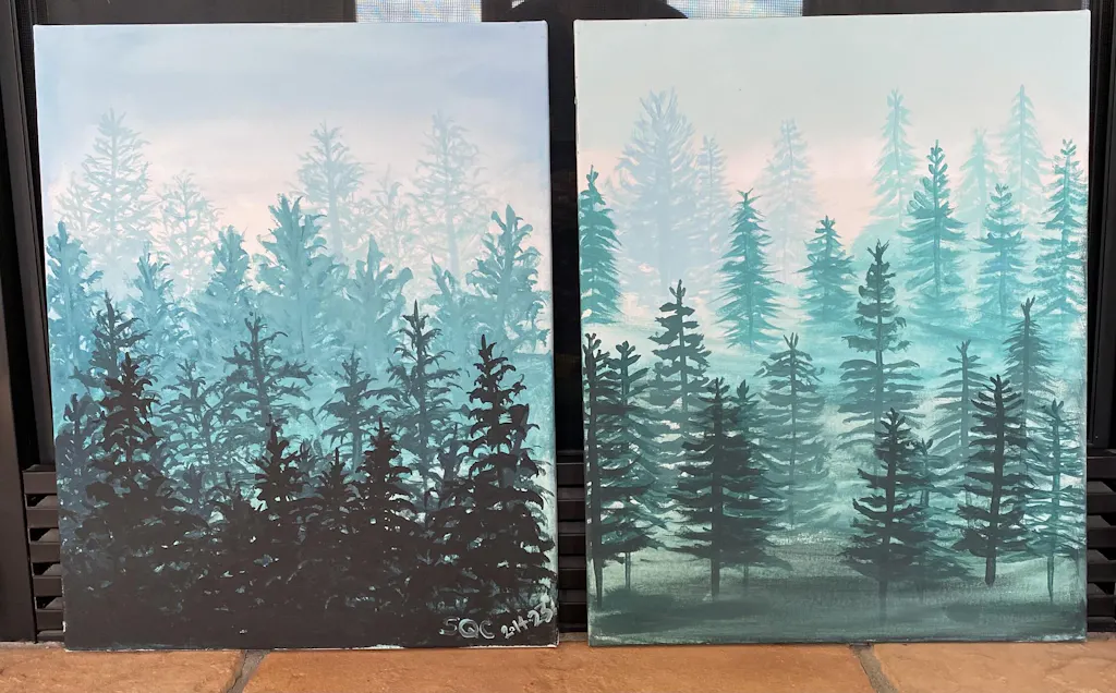 You can almost smell the fresh air in this misty forest. A display-worthy painting for any time of year, this serene forest scene makes for a skill-building painting experience - you will learn about mixing contrasting values, using atmospheric perspective to create a sense of depth, and (of course) you’ll get lots of practice painting evergreen trees!