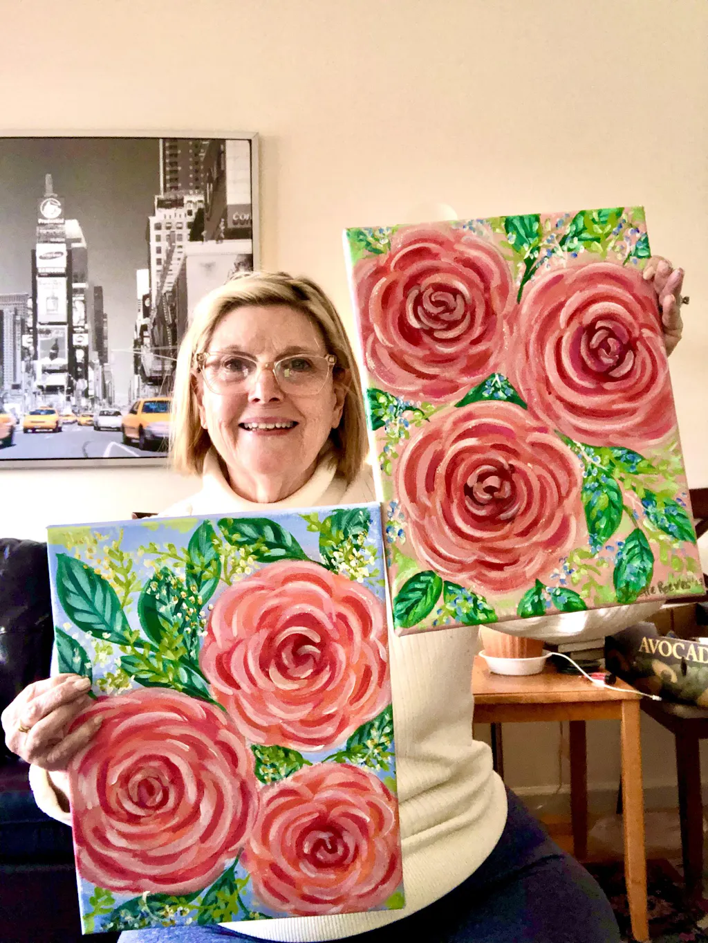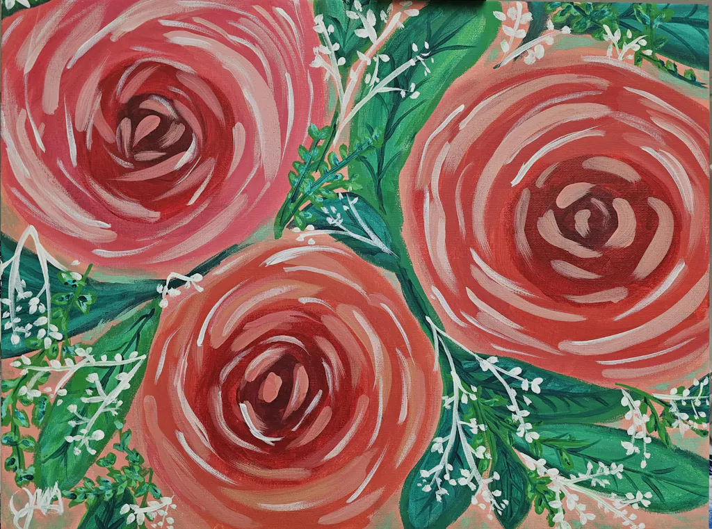 More is more with this bright floral! This canvas blooms with larger-than-life lushness. Customize these flowers with your favorite hues, and learn how to layer petals in a spiral pattern for roses that seem to almost pop right out of the frame.