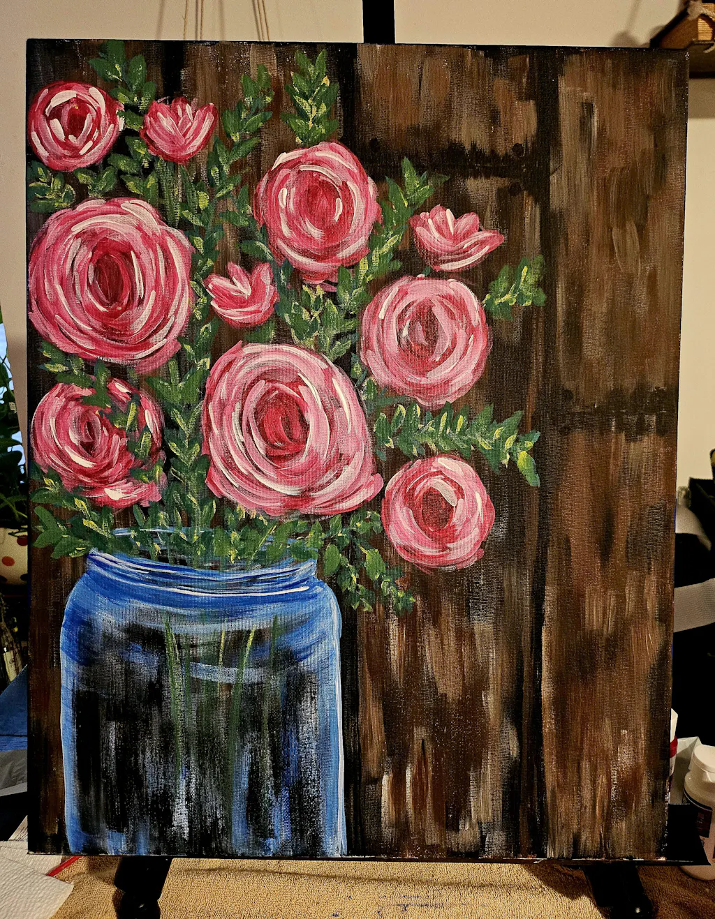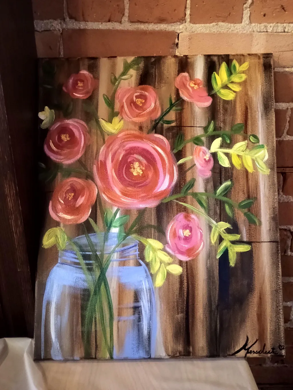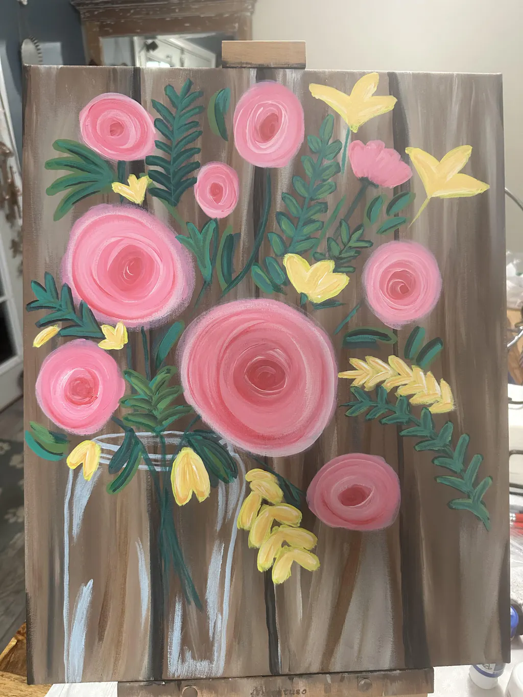 This painting is the perfect way to add some rustic country charm to your decor! Learn how to blend colors to achieve a weathered wood-grain background and layer loose, flowy brushstrokes to create this bouquet of bright blossoms, as that will add a touch of freshness to any room.
