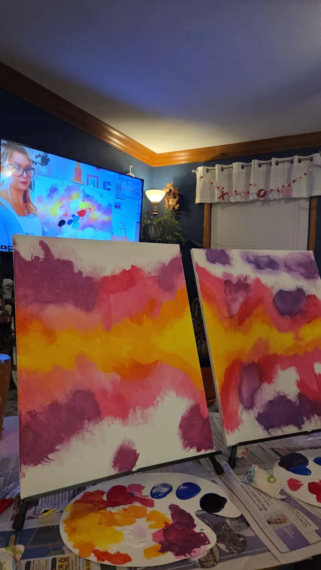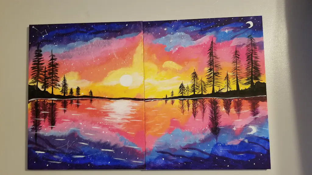 We recommend our Date Night Studio or our Date Night Essentials Kit For a date night diptych experience. You will paint one half of the painting on one canvas and your partner will paint the other half on another canvas. Each of you will have your own supplies.