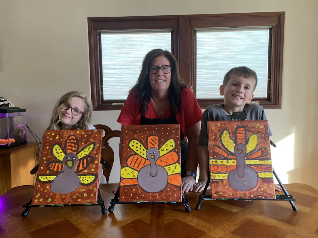 This fine feathered friend is thankful to be the star of your painting! With a fan of bright plumage, this turkey painting is perfect for seasonal decor!