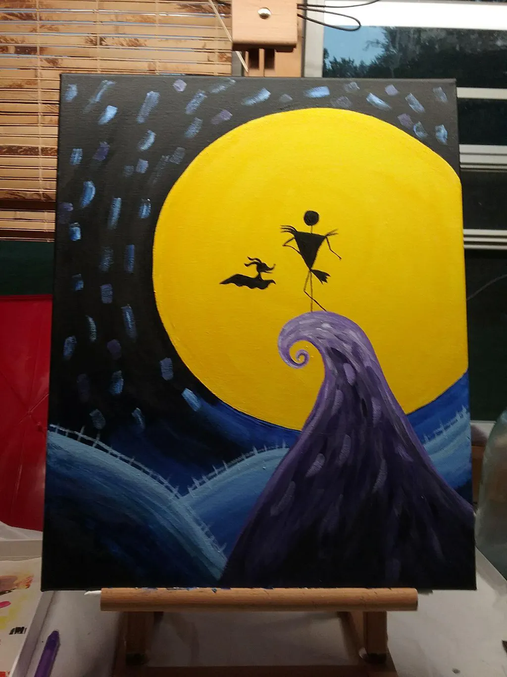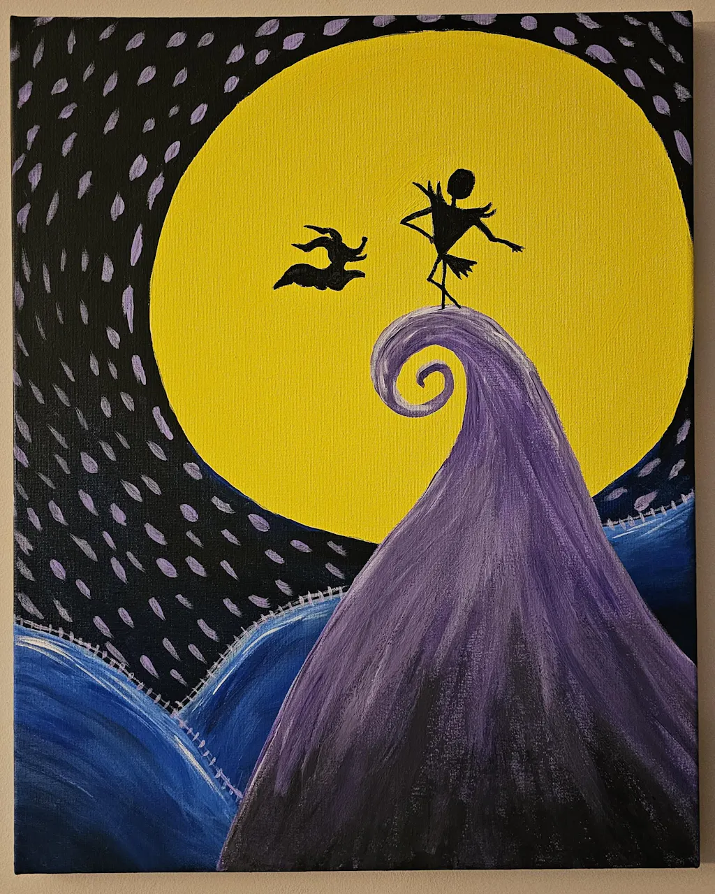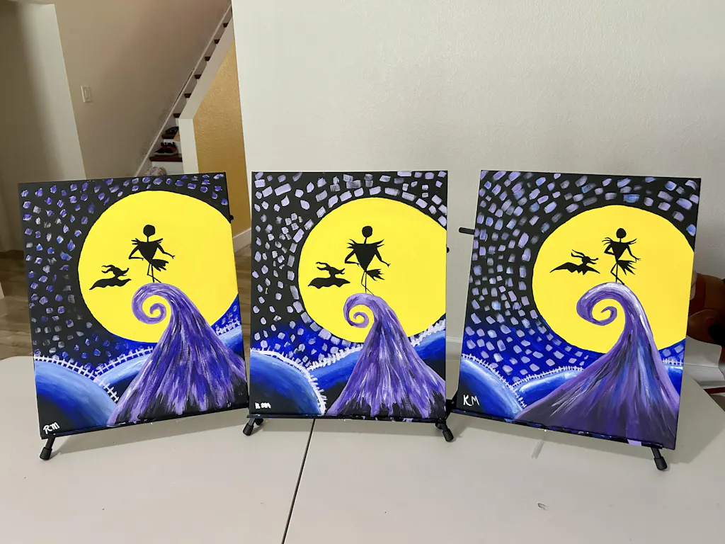 Featuring everyone’s favorite skeleton man and ghost dog duo, this bright and bold Halloween painting is anything but a nightmare! Tricks for building characters out of simple shapes make this spooky scene a treat to paint.