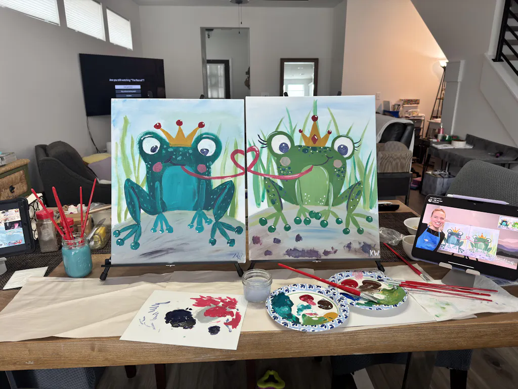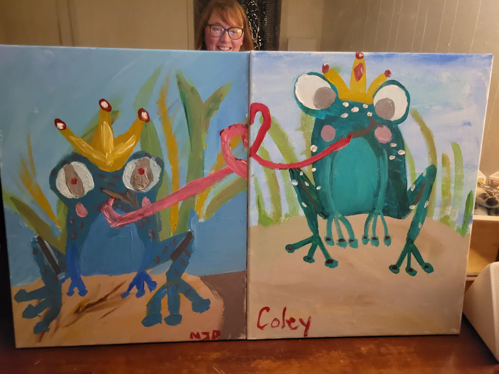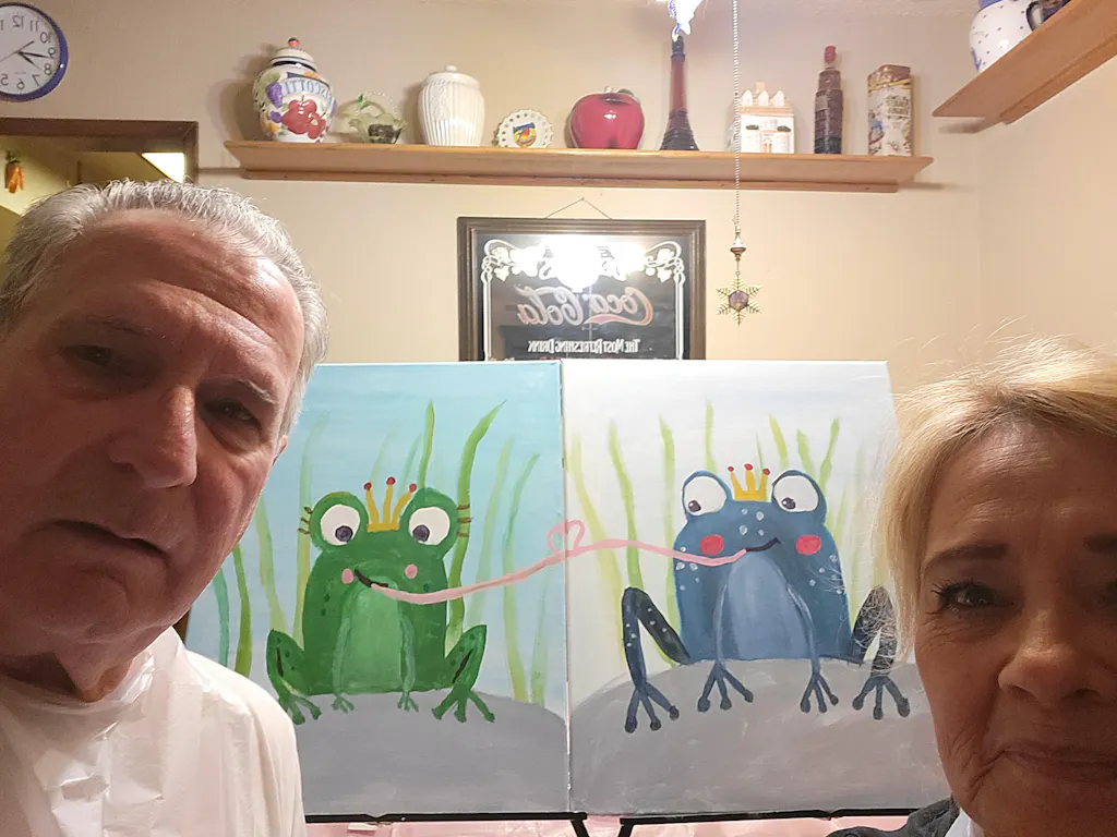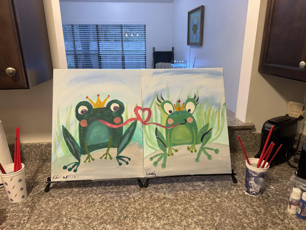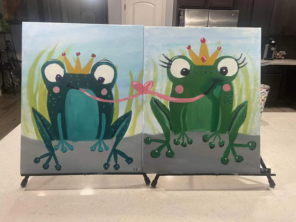 They say it takes kissing a lot of frogs to find true love, but these two amorous amphibians seemed to have figured out the secret! As lord and lady of the lily pond, this frog prince and princess spend their time making eyes, catching flies, and sharing sweet kisses. Do the same as you paint this duo with your special someone (well, maybe not the flies part - just grab your favorite snack instead).