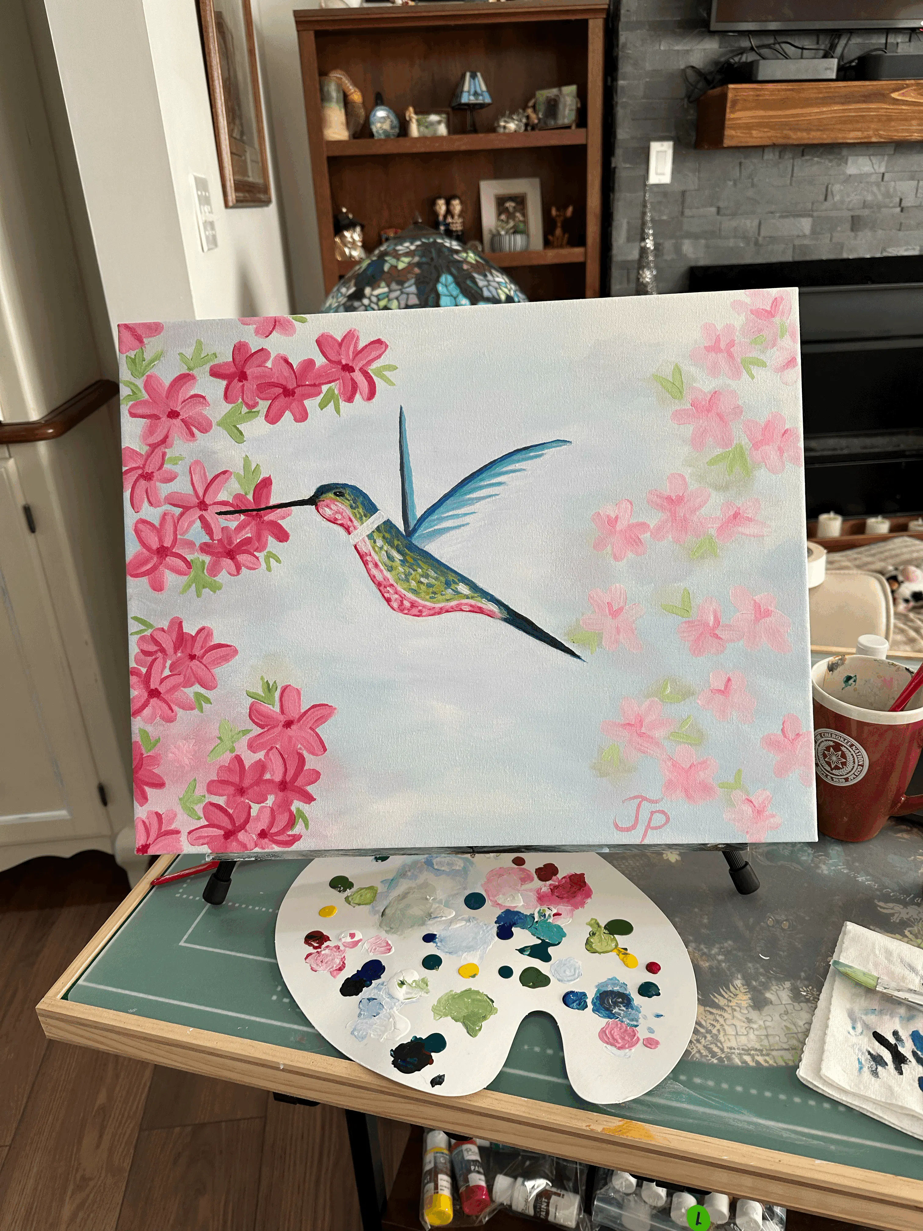 Are you a bird lover? Learn how to paint a hummingbird and flowers step-by-step. We will walk you through how to create a blurry soft background, some simple flower shapes, and an easy way to draw out a hummingbird.