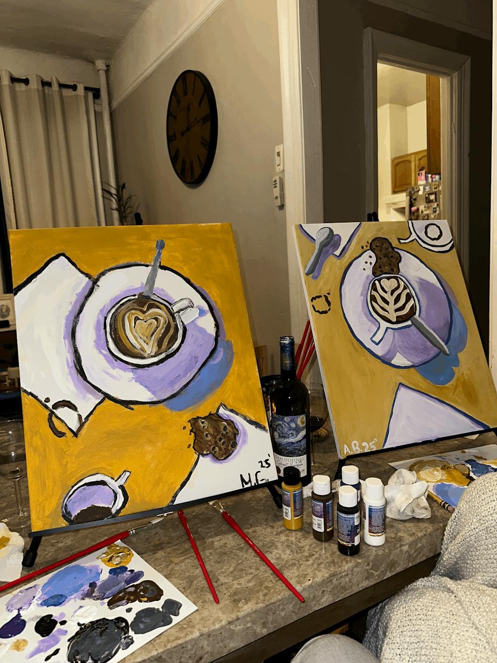 We recommend our Date Night Studio or our Date Night Essentials Kit For a date night diptych experience. You will paint one half of the painting on one canvas and your partner will paint the other half on another canvas. Each of you will have your own supplies.
