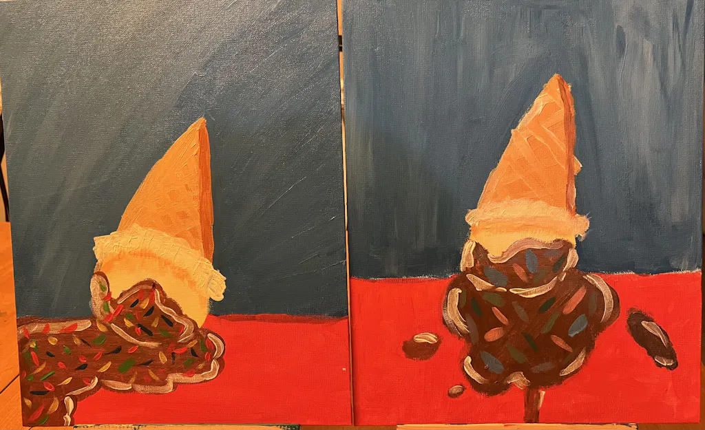 Splat! Turn an unfortunate mishap into some fun and funky art with this messy, melty ice cream cone painting. Switch up the color of the ice cream to paint your favorite flavor!