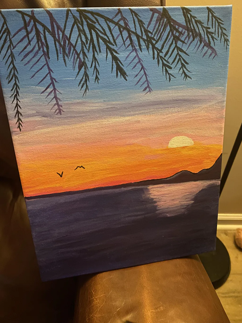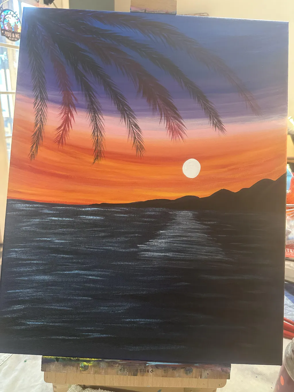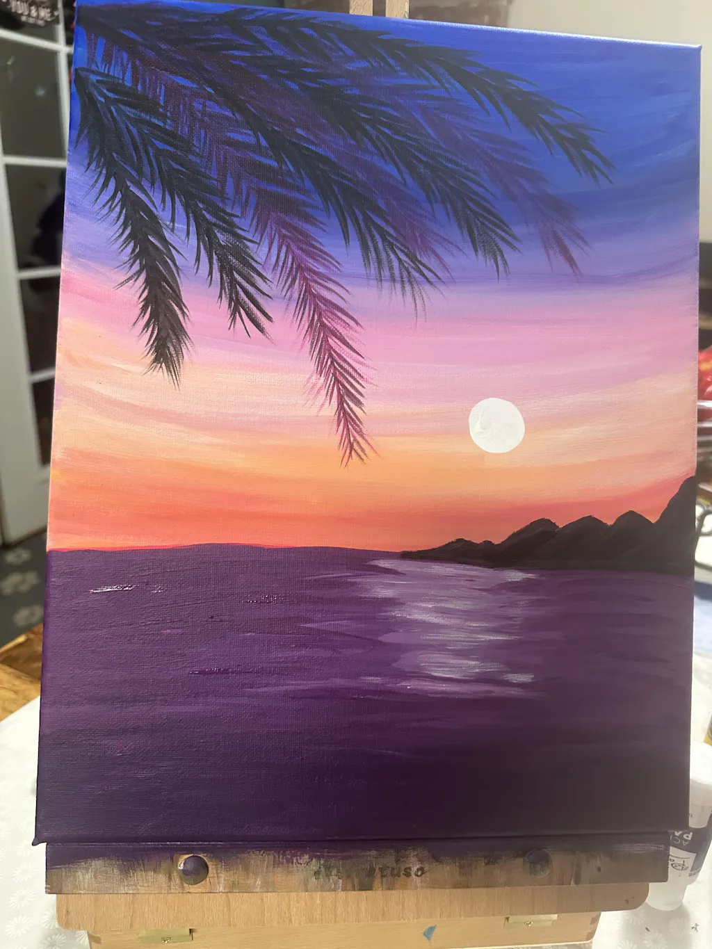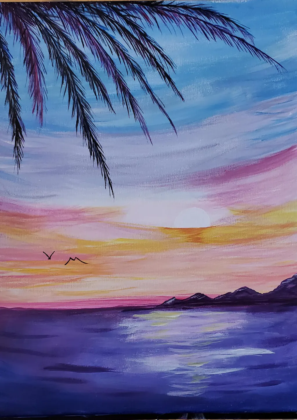 Paint your own window into paradise with this breezy tropical sunset. Learn how to blend colors for the perfect beachy sky, paint realistic reflections, and layer on the palm fronds to frame your masterpiece. Then sit back and soak up the perfect view!