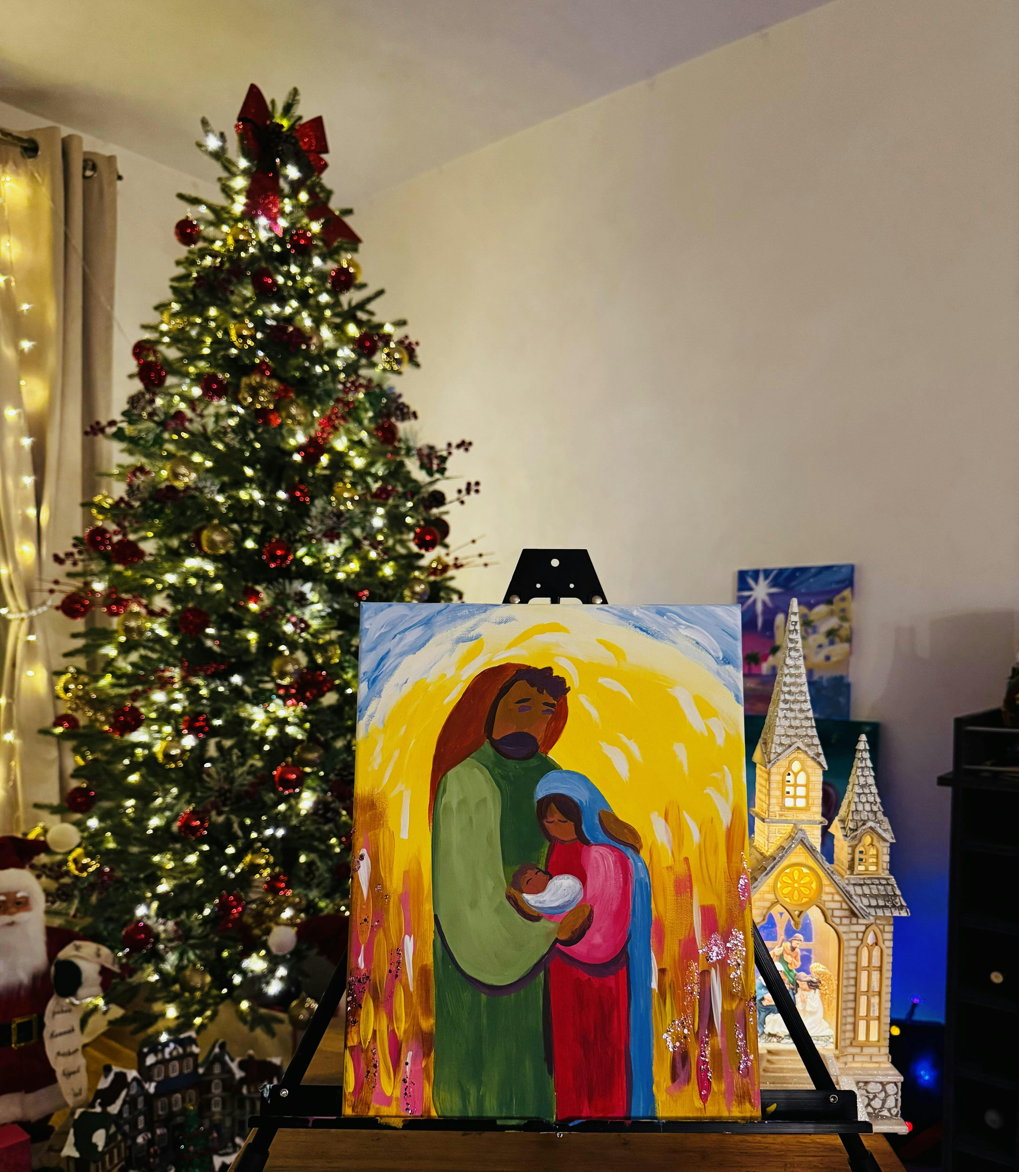 Celebrate the reason for the season with this portrait of Mary, Joseph, and baby Jesus! Learn how to build figures out of simple shapes, mix realistic skin tones, and layer lots of brush strokes for a glowy background reminiscent of van Gogh’s Starry Night.