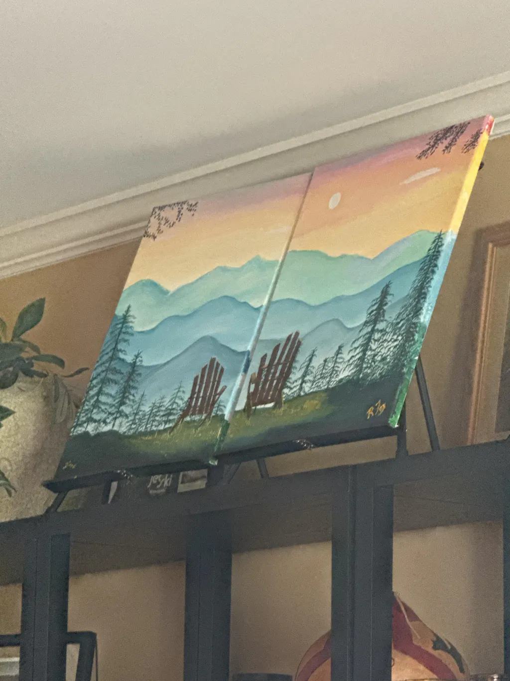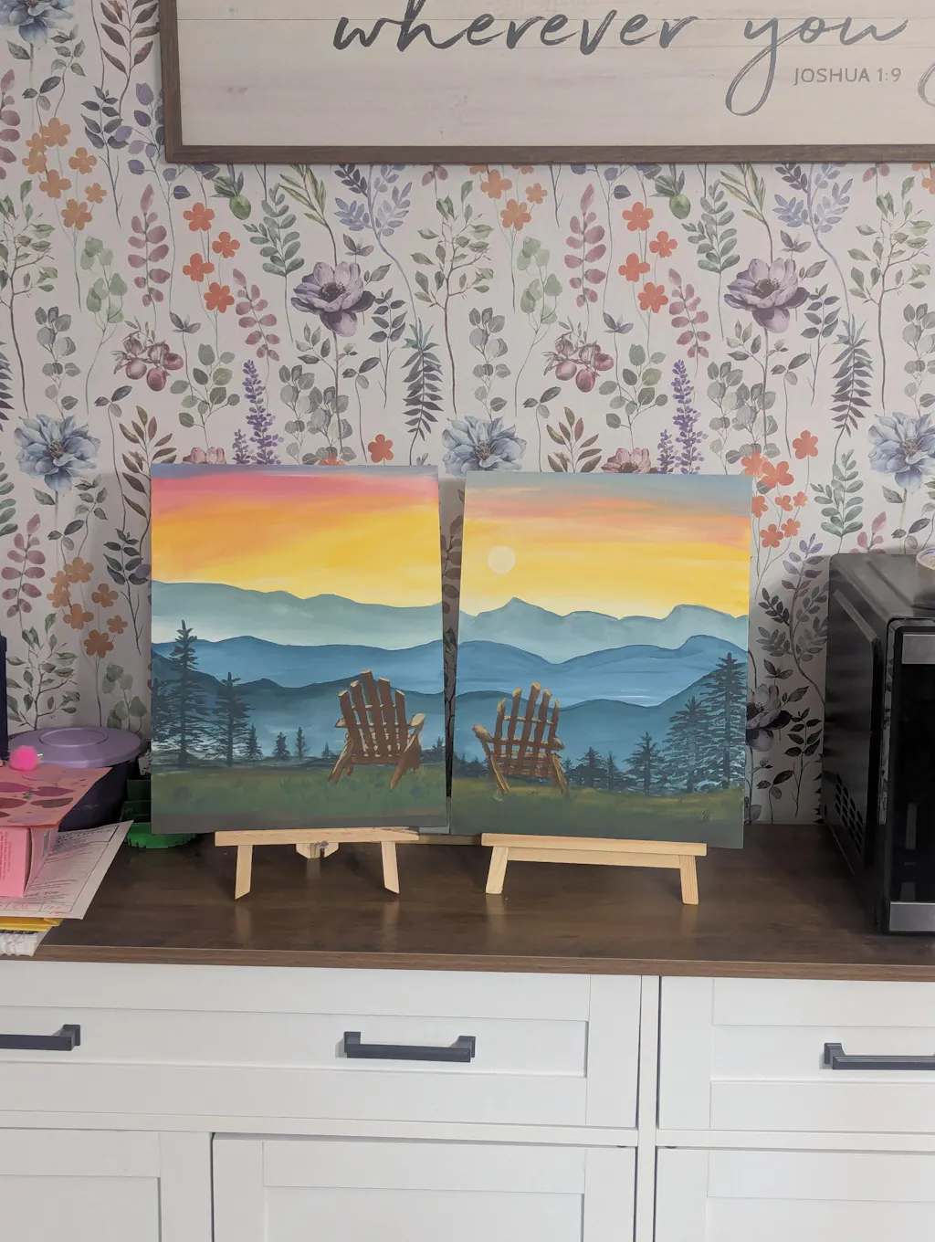 Pull up a chair, save a seat for your special someone, and enjoy this view of a breathtaking sunset blooming in the sky beyond the distant mountains. Combine both together onto one canvas for a scenic solo landscape painting, or scoot two canvases together to create a matching set that’s clearly meant to be side by side - just like the two of you!
