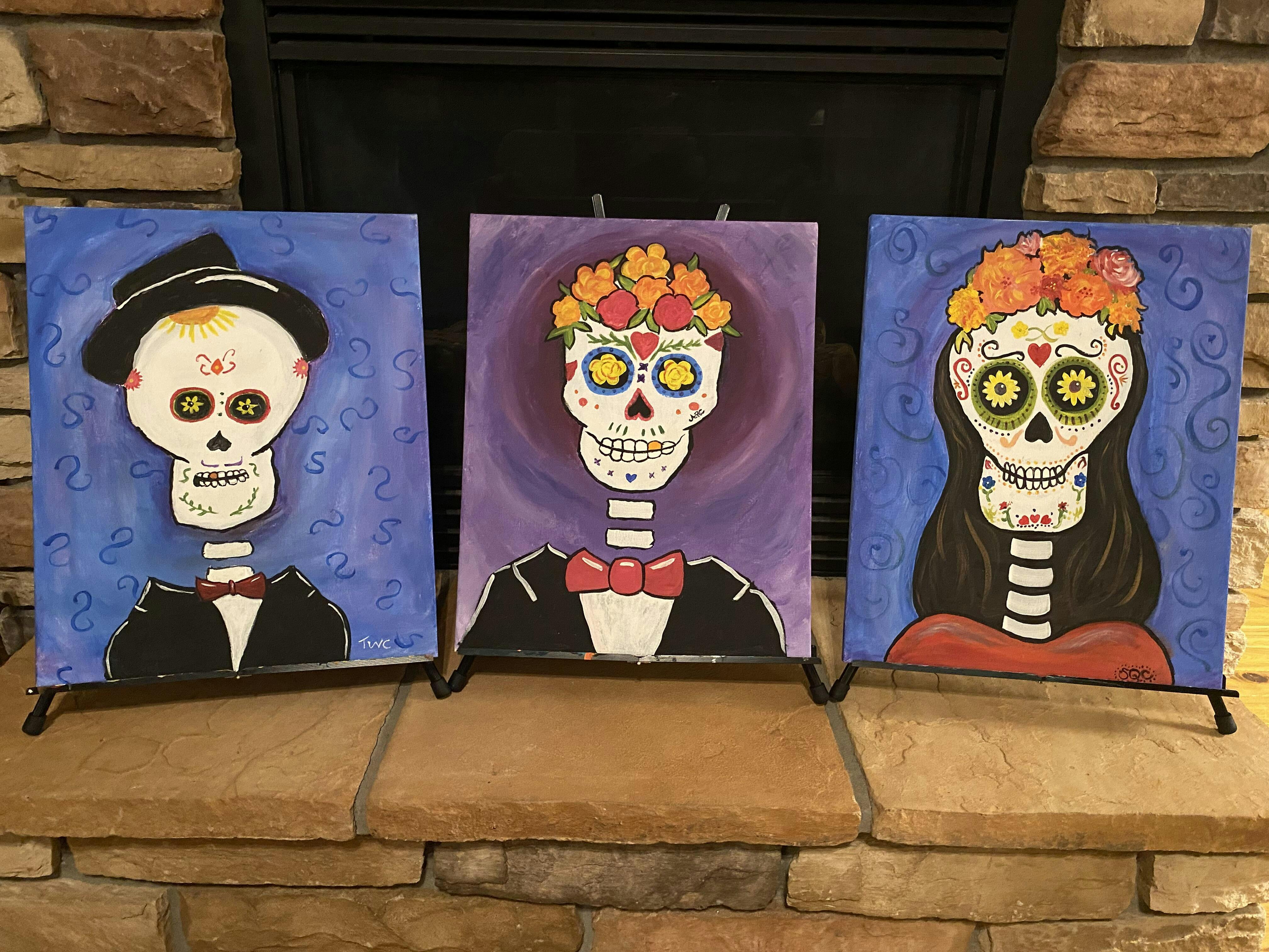 Make no bones about it, this departed duo is ready for a rollicking good time in the bright beyond! Celebrate Dia de Los Muertos (Day of the Dead) with this take on a pair of calaveras, traditional smiling sugar skulls that commemorate loved ones and celebrate life’s grand adventure. Customize your calaveras with all the fashionable accessories, festive flowers, and intricate designs you can imagine!
