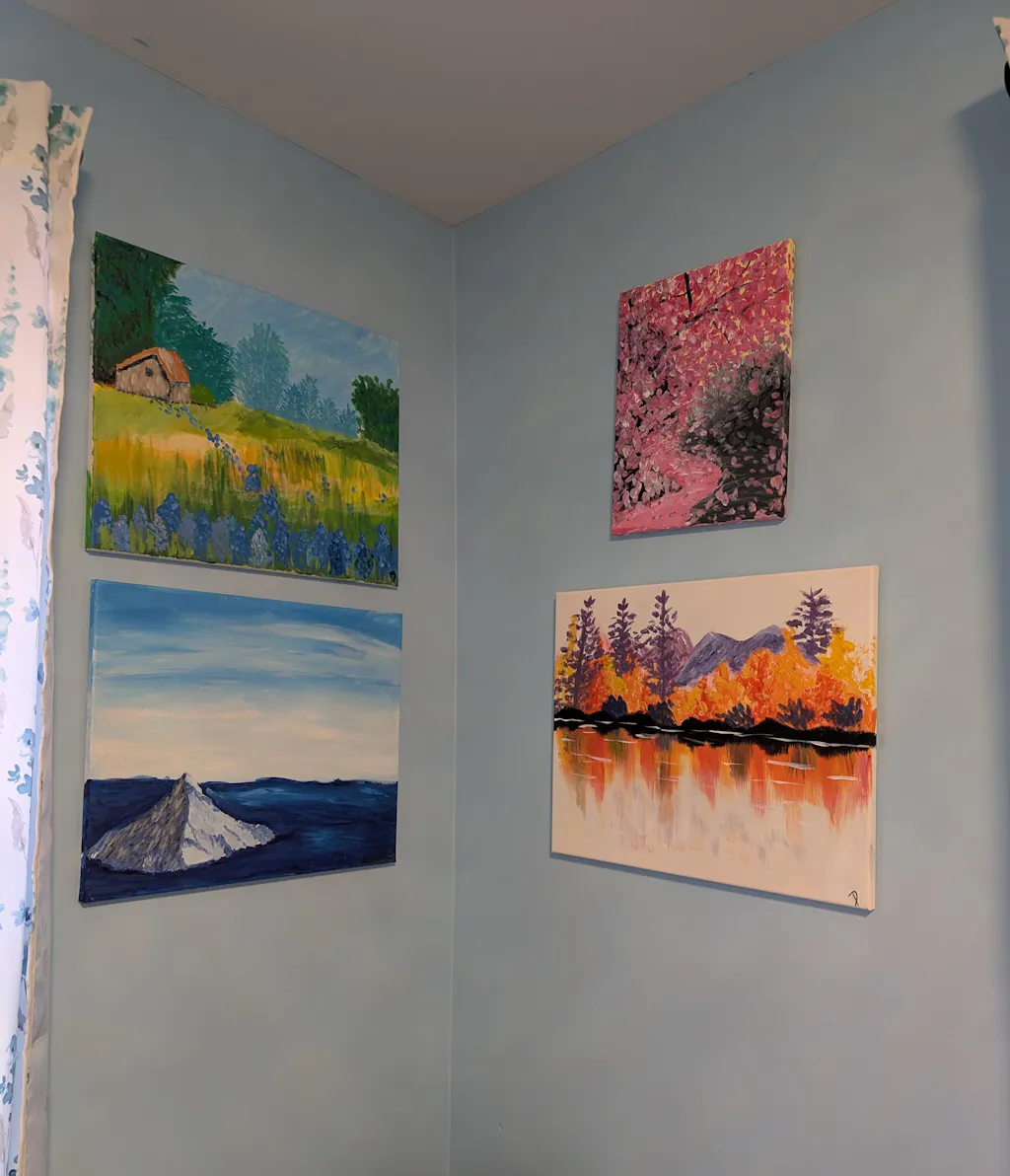 Wendy is a lifelong artist, mother, and dog mom from Southern California who has worked in almost all art mediums. Acrylic paintings made to inspire everyone to paint are her specialty. She is most influenced by the styles of impressionism and surrealism, and her teaching style is for all levels of skill with a touch of inspiration from Bob Ross.