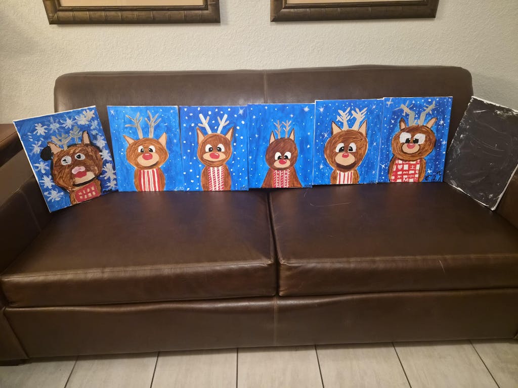 Help Santa’s reindeer pull his sleigh by painting Rudolph’s rosy red nose to light the way!