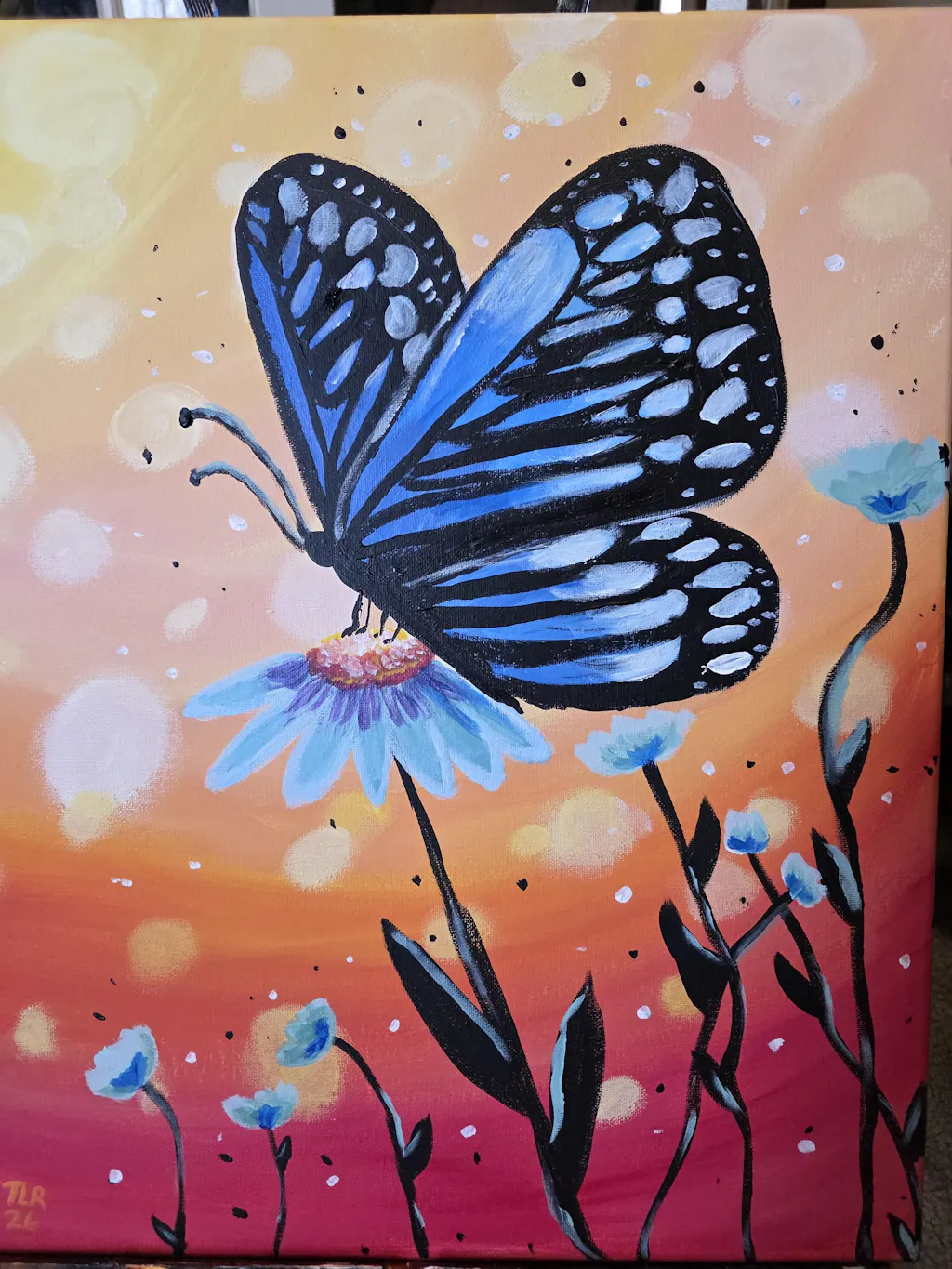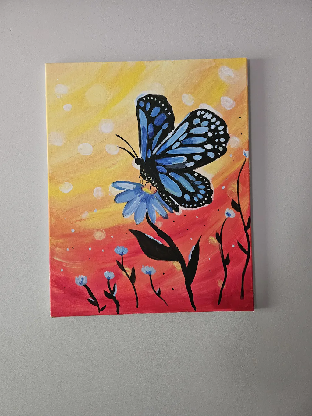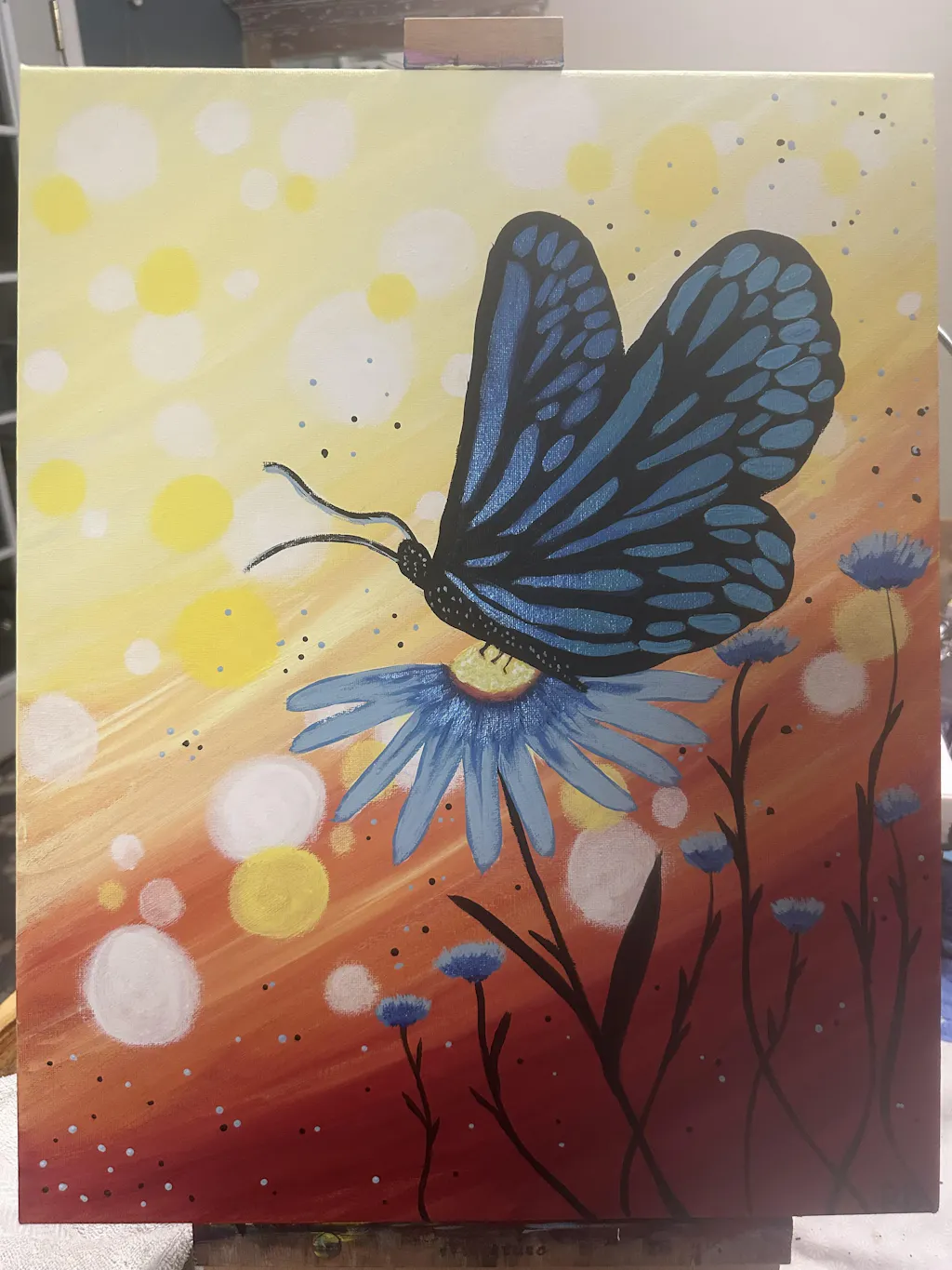 Capture the ethereal moment a butterfly lands on a flower with this painting of a sapphire-winged beauty. Use an easy technique to create a reflective bokeh effect in the background, and learn to paint an intricate butterfly step by step.