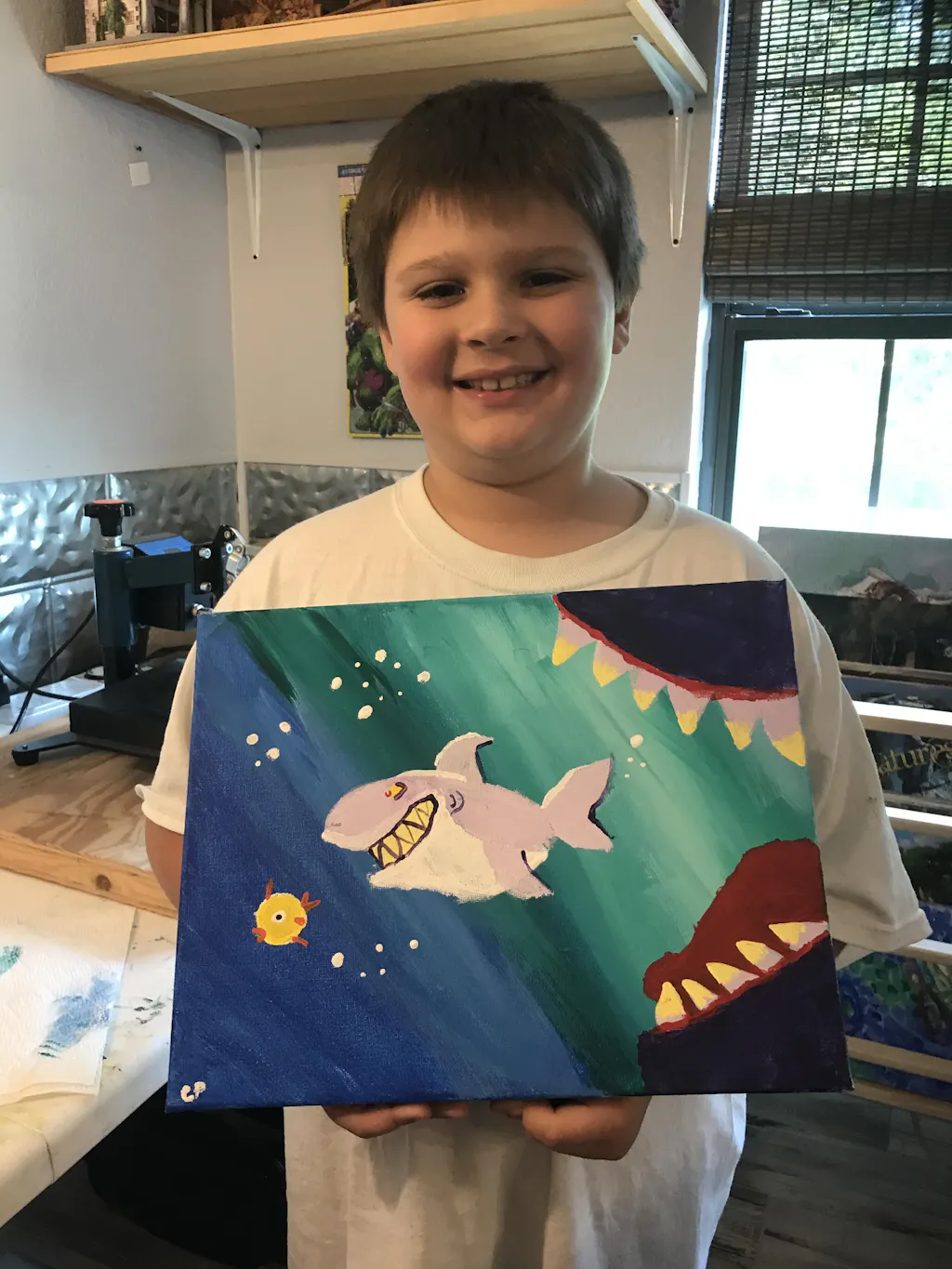 On the hunt for a painting filled with action? Here's a painting you can really sink your teeth into! Learn how to draw a shark using simple shapes and layer colors to give your fearsome sea monster a 3D effect.