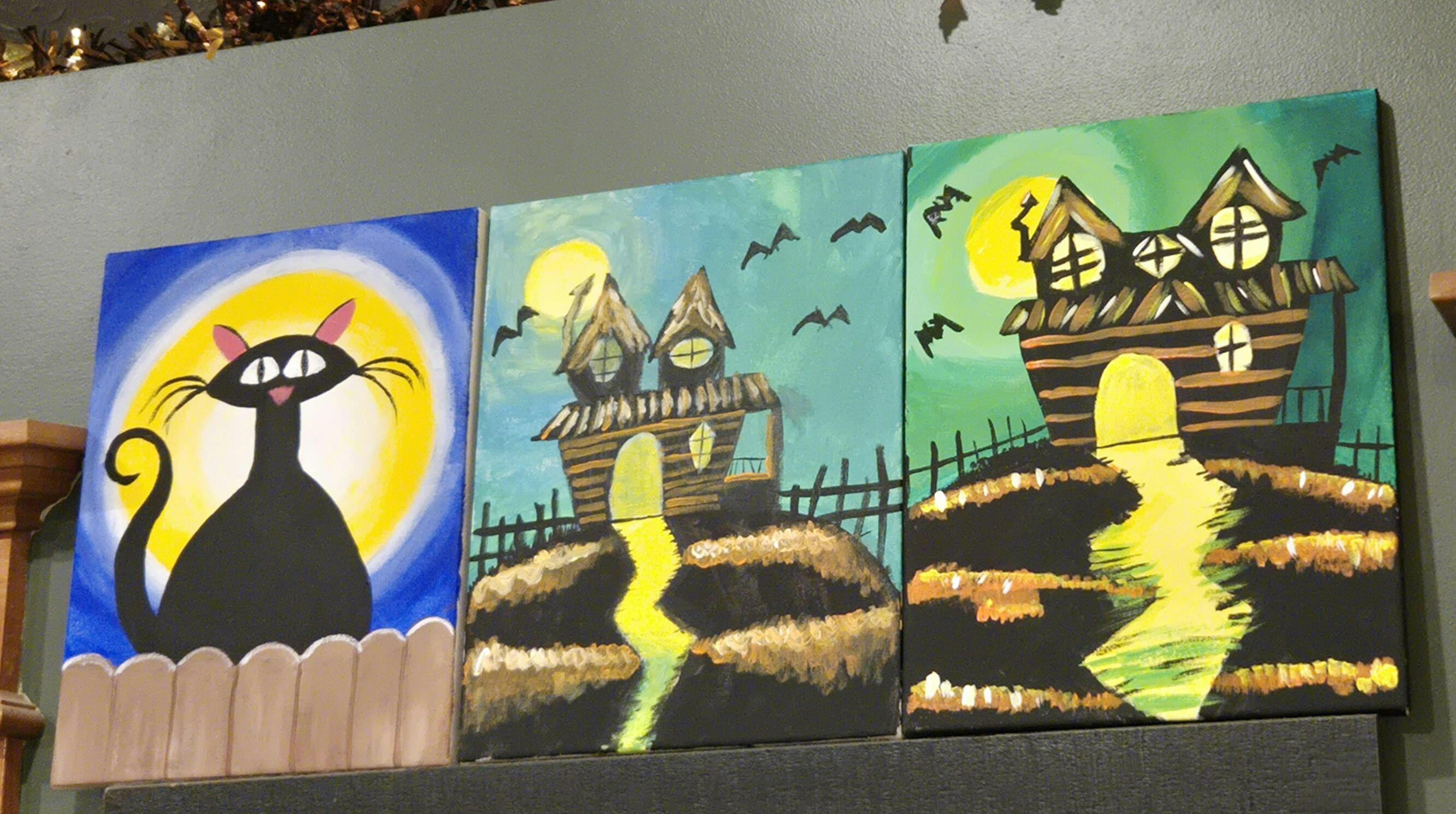Our best value for kids: four painting activities in one exciting kit! This kit features four spooky designs perfect for Halloween: a stealthy black cat, silly ghost snacking on sweets, a creepy haunted house, and a jack-o-lantern you can customize any way you like!
