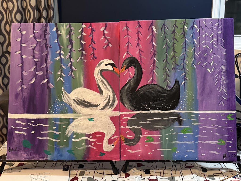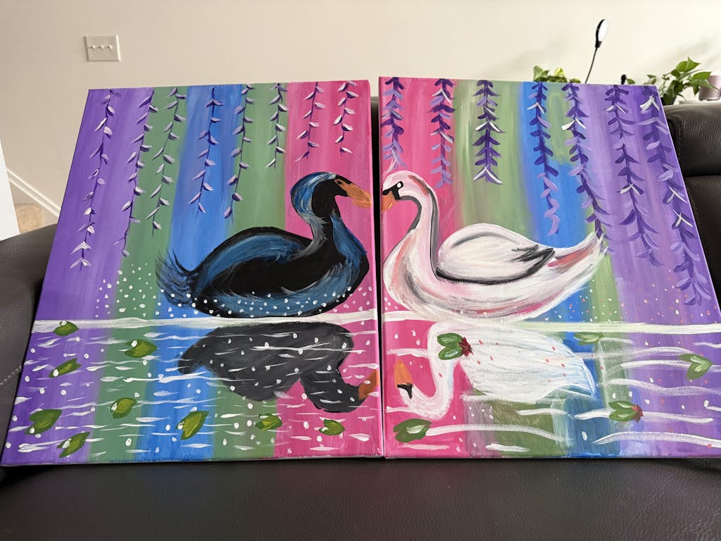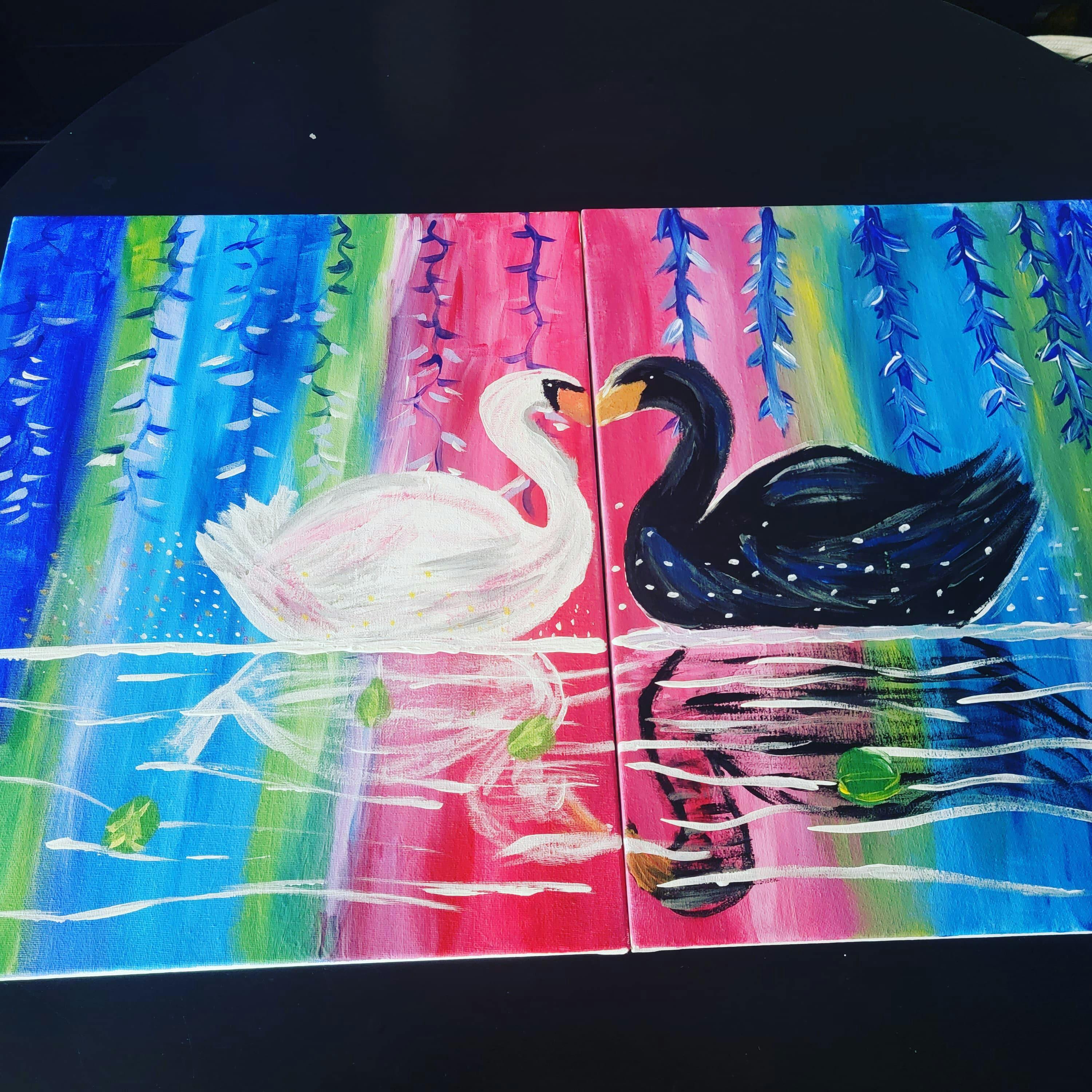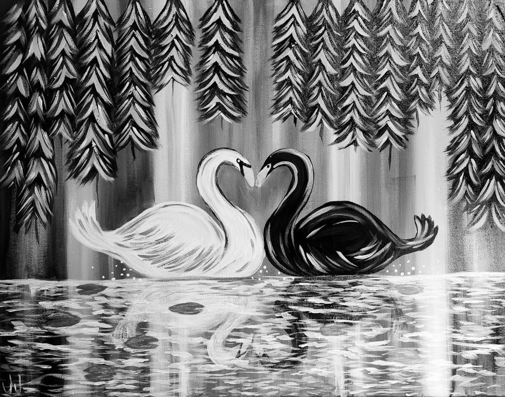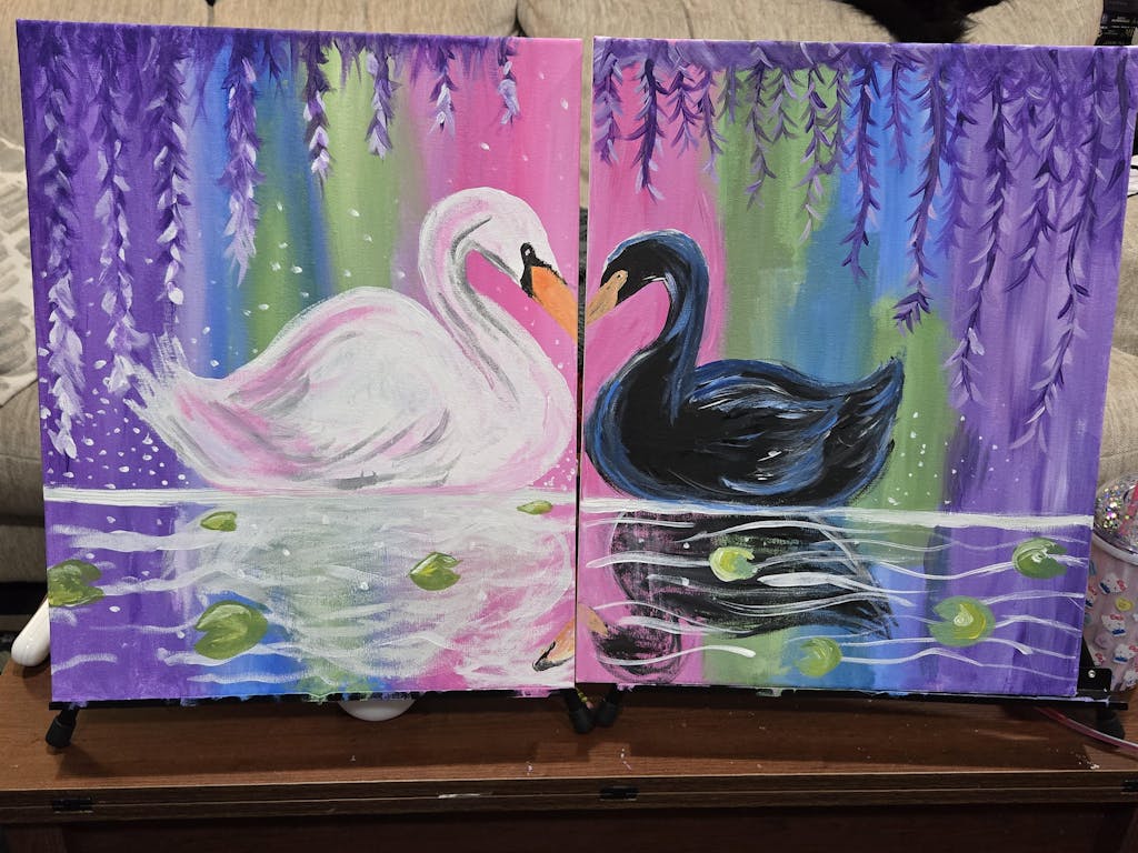 One magical moment for two? An enchanted lagoon is just the place! Focusing on atmospheric blending techniques and soft details, this painting perfectly captures the mystery of romance. Paint both swans together for a solo composition, or partner up with your special someone to paint this magical moment across two canvases for your own romantic rendezvous!