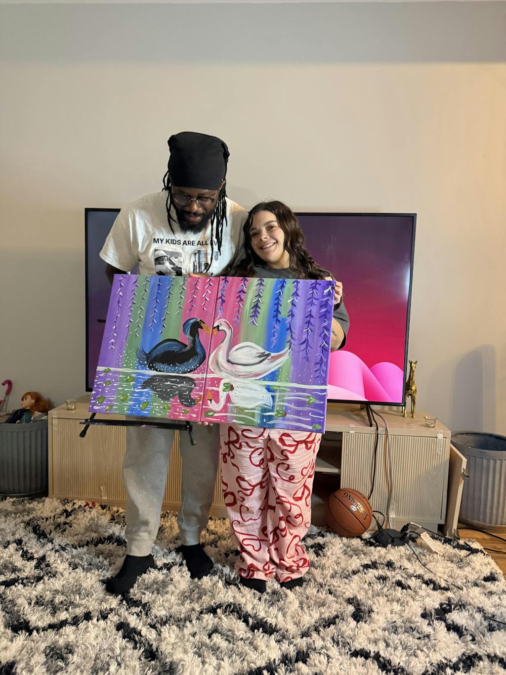 We recommend our Date Night Studio or our Date Night Essentials Kit For a date night diptych experience. You will paint one half of the painting on one canvas and your partner will paint the other half on another canvas. Each of you will have your own supplies.