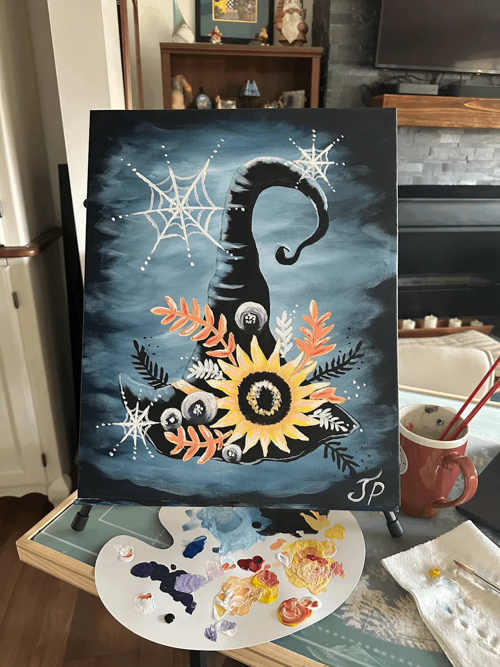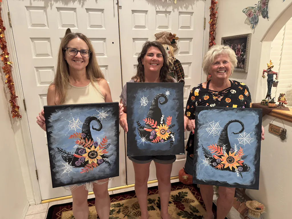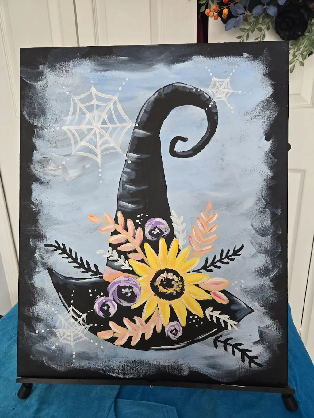A little spooky, a little sweet—this witch’s hat is casting serious floral magic. With swirling blooms, cobweb accents, and enchanting colors, this painting is a Halloween must for anyone who loves a twist of charm with their chills.