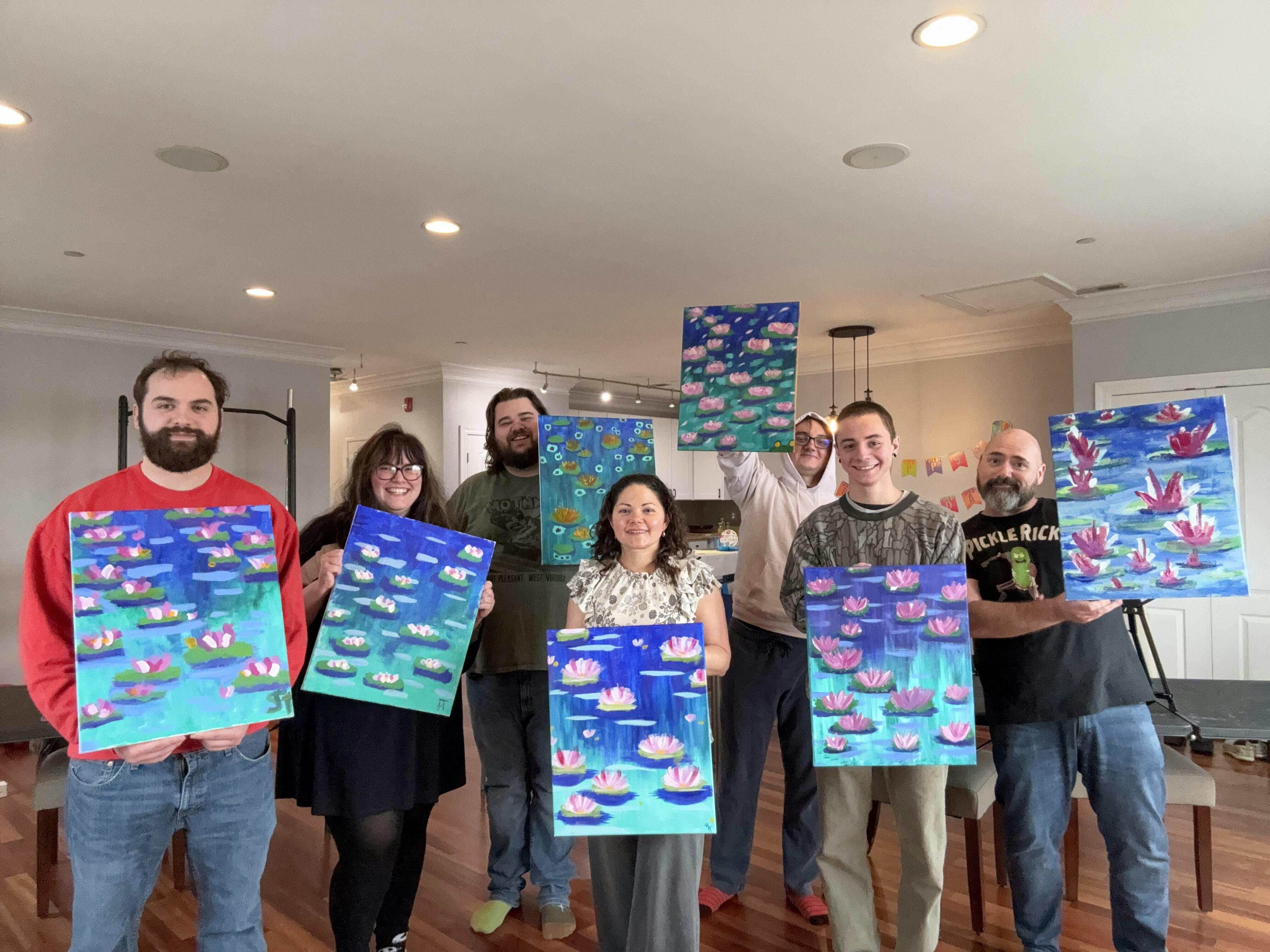 Our stylish spin on a classic! Using loose, chunky brushstrokes in luminous, vibrant colors, this beginner-friendly tribute to Monet’s iconic Water Lilies makes for an easygoing painting experience and a winner for your wall.
