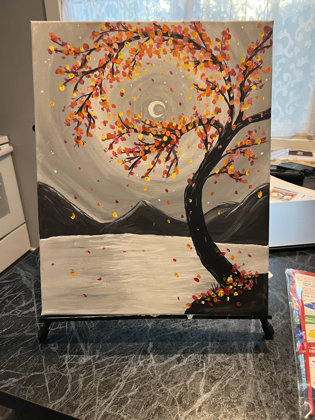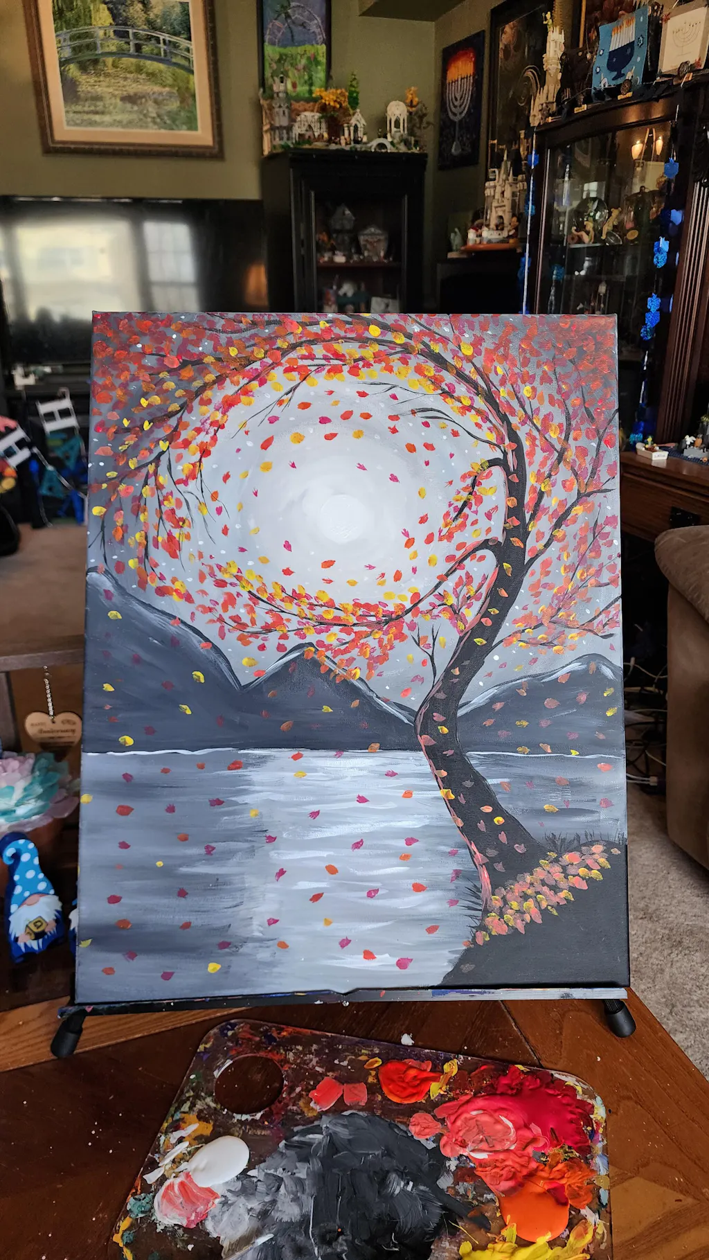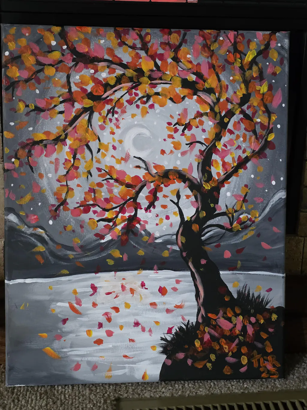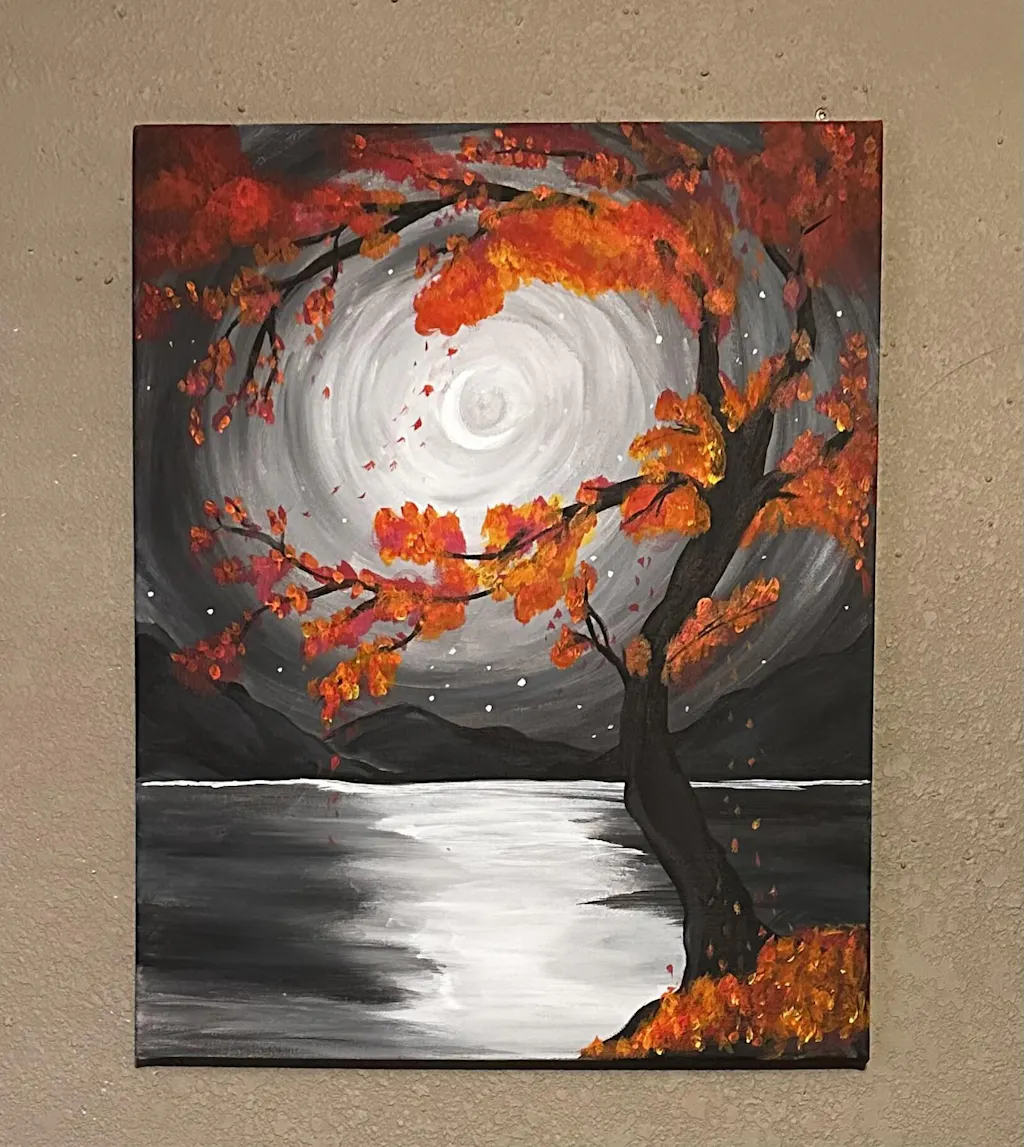 This painting captures the fiery reds, rusty oranges, and golden yellows of fall foliage. Learn how to create a sense of space using only black and white, and then bring on the color!