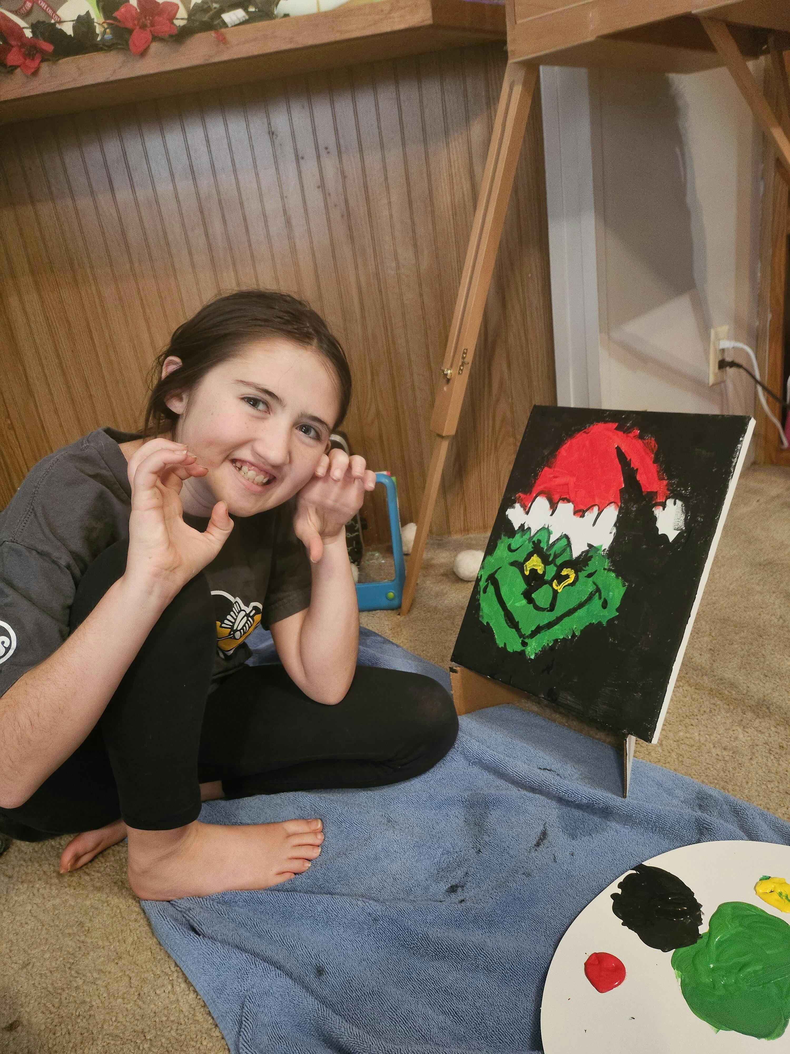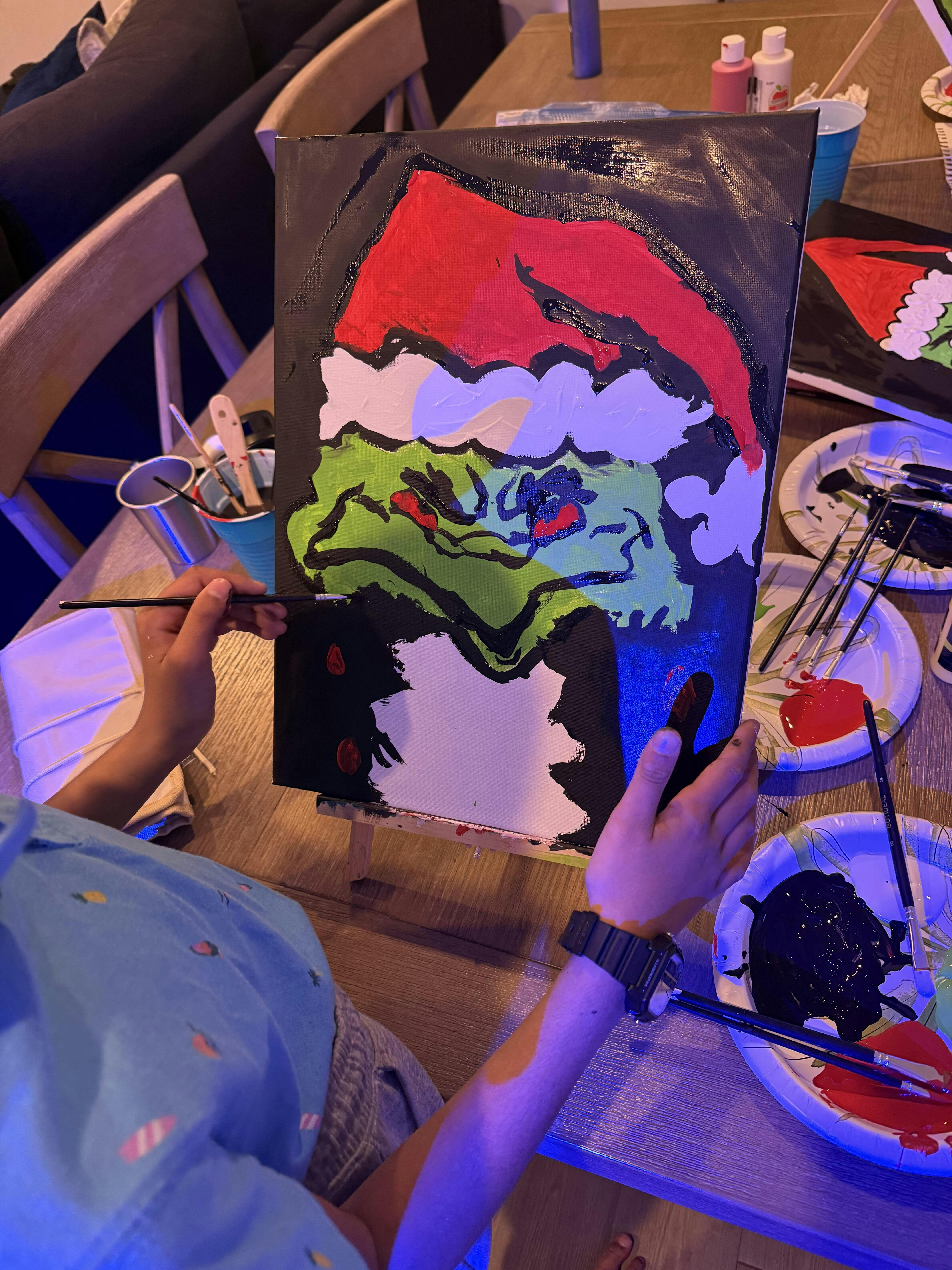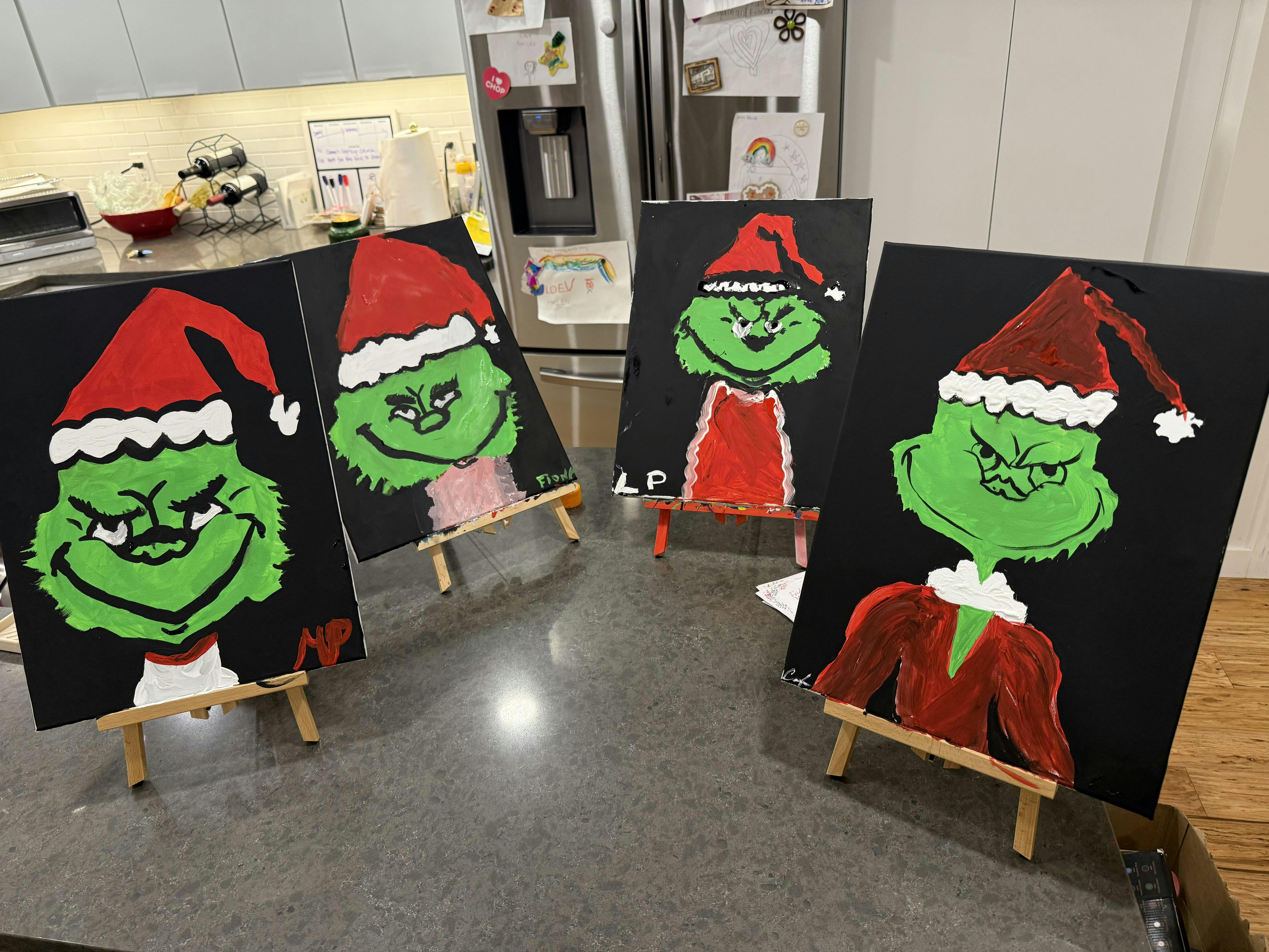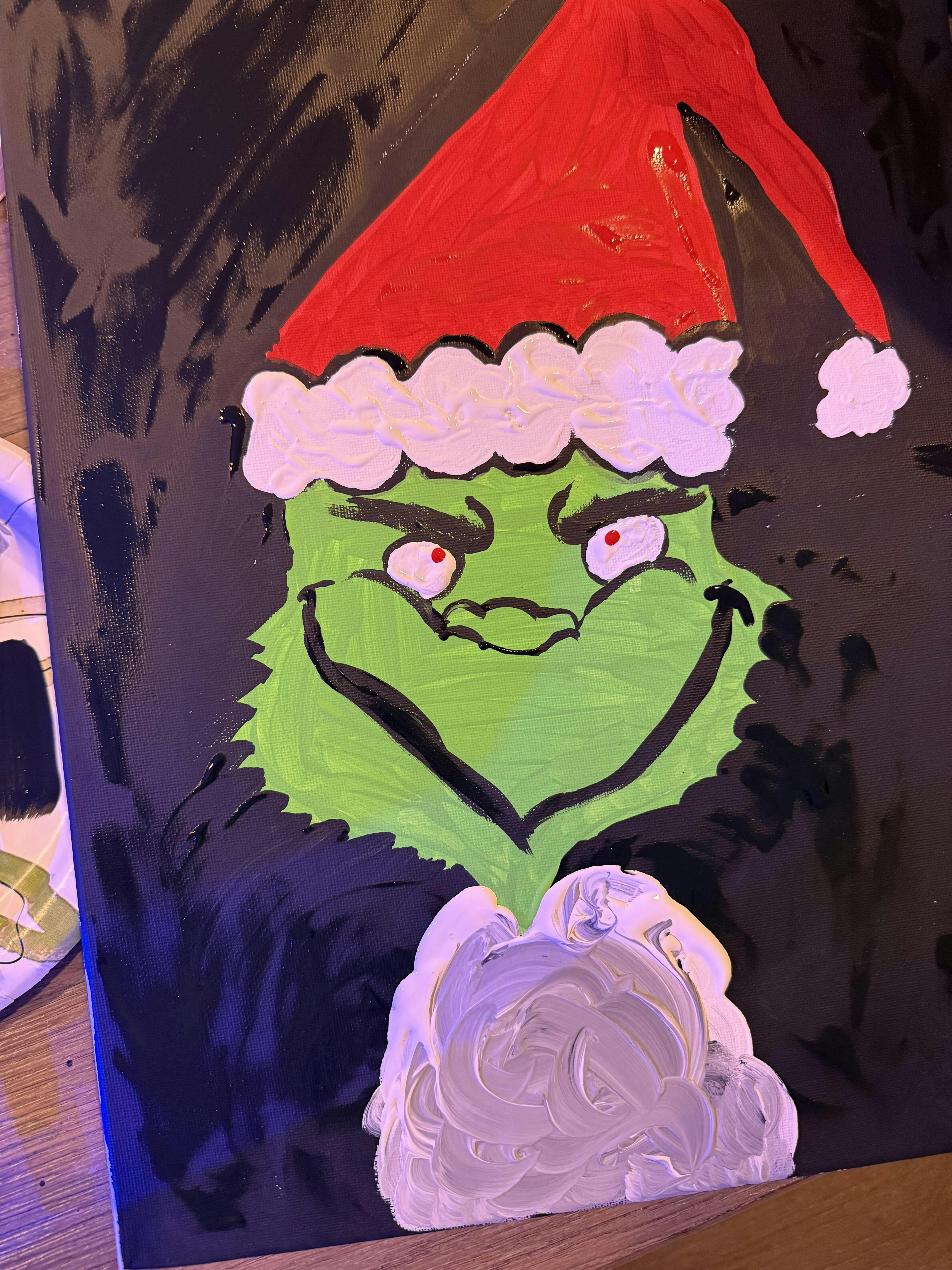The Grinch can pilfer presents from under the tree, but he can’t steal the fun out of this painting experience! Get your green on and learn to paint this iconic character with his fluff-trimmed Santa hat and infamous curling grin. Makes a great holiday gift!
